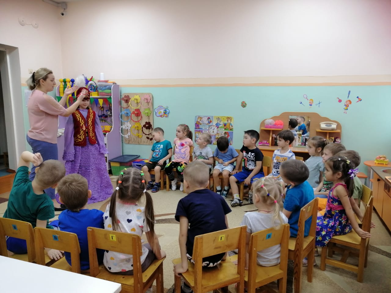Бір апта ішінде "Ягодки" ересектер тобының балалары жабайы жануарлар туралы түсініктерін кеңейтті, серуендеу кезінде синичканы бақылап отырды. Балалар "Сиқырлы кітап"ертегісінің премьерасында қуыршақ театрына барған кезде көптеген эмоцияларға ие болды. Танымдық және шығармашылық дағдыларды дамыта отырып, балалар "Қазақ ұлттық киімі" тақырыбындағы шығармашылық жобамен жұмысты жалғастыруда : бас киімдерді қарап, түтікшені безендірді, қазақтың ұлттық киімдерінің көрсетілімі өтті. Уақыт зымырап өтті, бірақ ең бастысы көңілді және тәрбиелік.