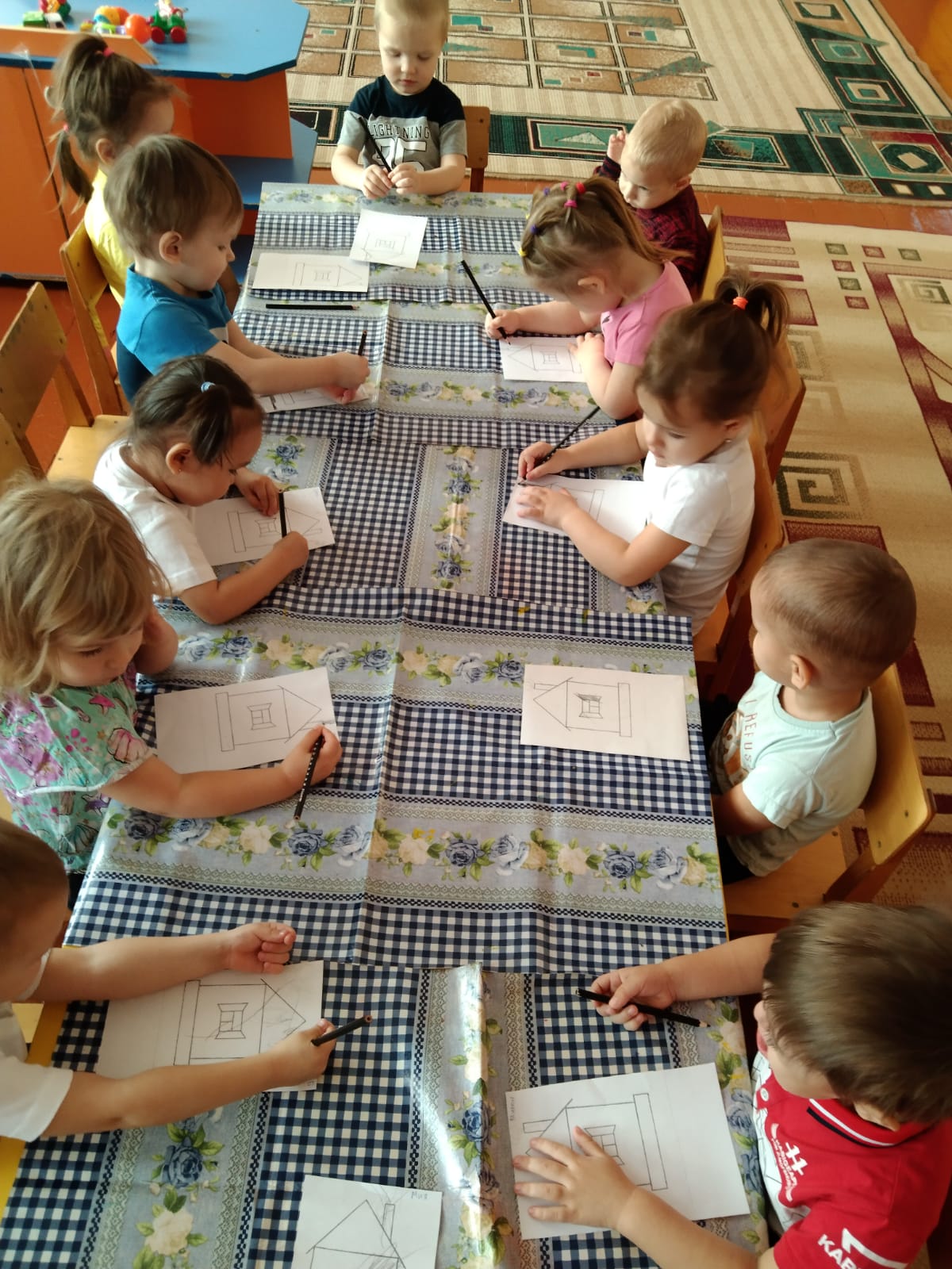 Шығармашылық қабілеттерін дамыту үшін "құбырдан түтін, "доп ","дәмді торт", "толқындар"; "қоянға арналған бұтақ", "Кокерельге арналған бұршақ", "тізбекті жинаңыз"қосымшасы салынды.