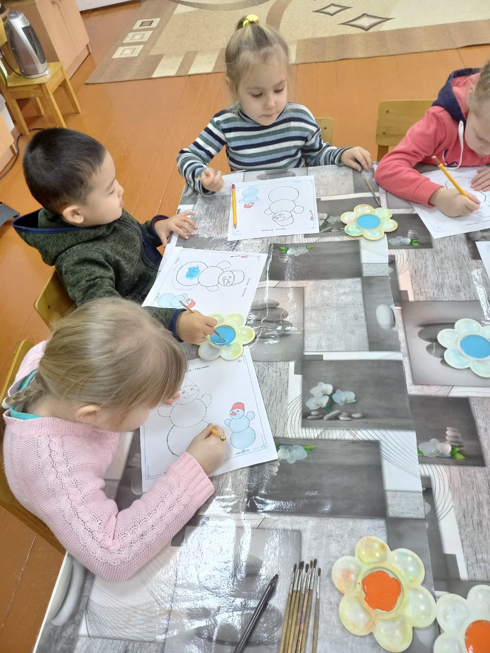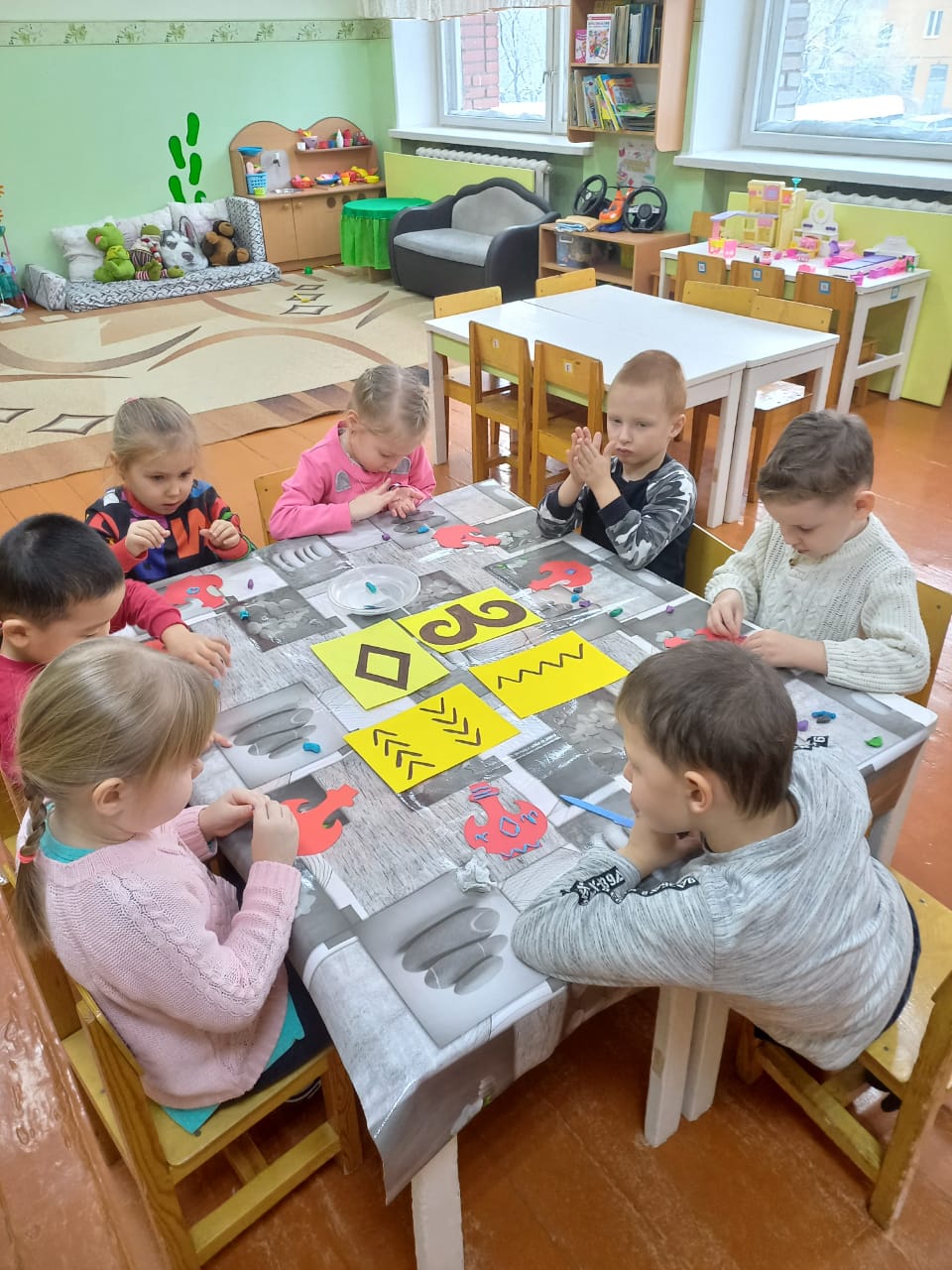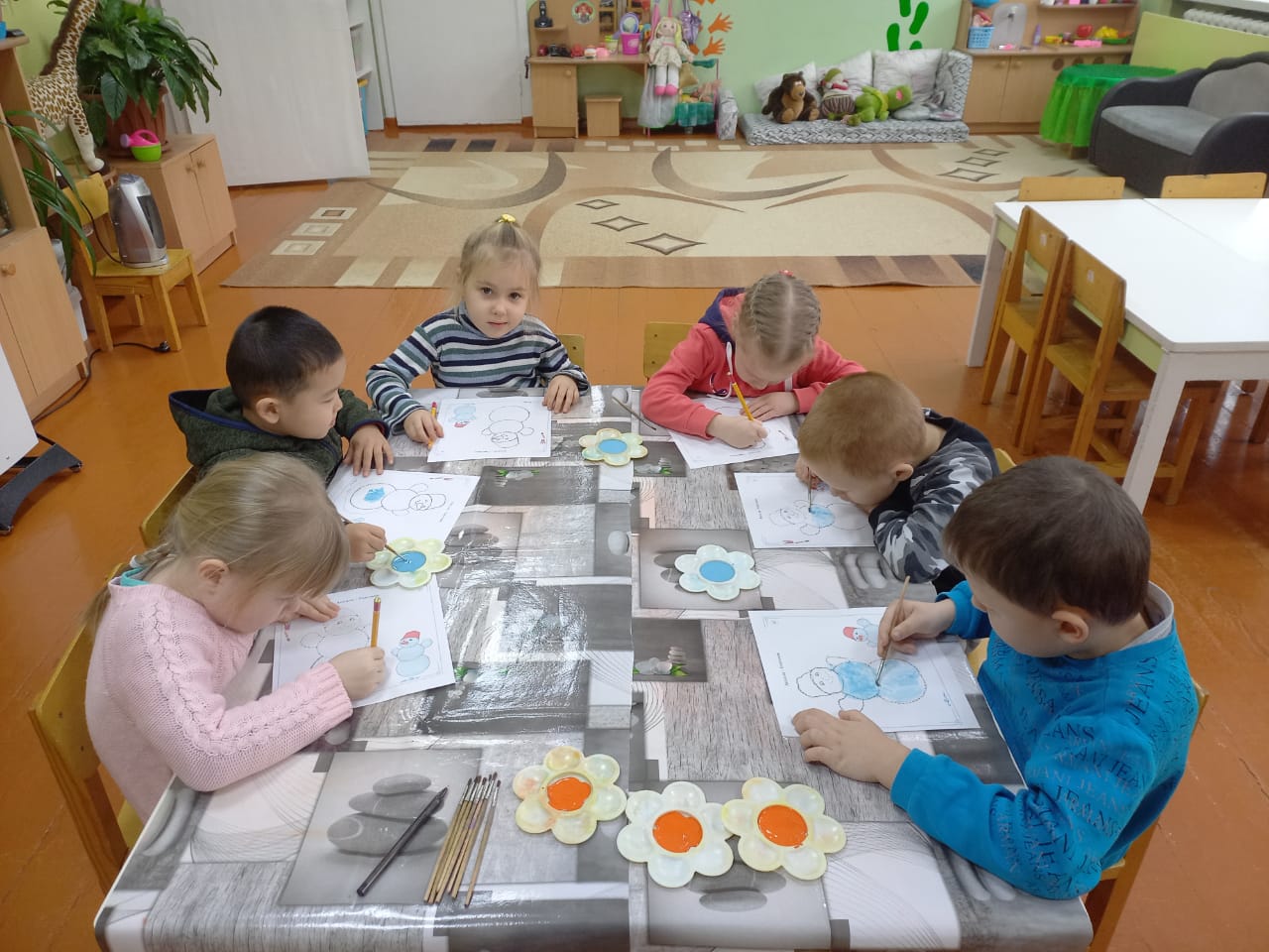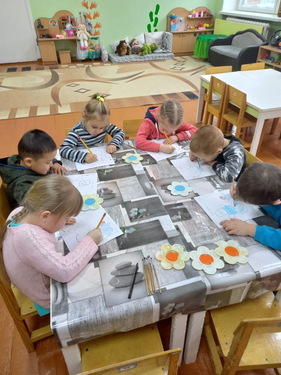 "Колобочки" тобындағы апта жемісті өтті. Балалар ойындар арқылы заттардың мөлшері әртүрлі болуы мүмкін екенін білді. Қыс пен қыстың қызықтары туралы әңгімелестік. Олар " Снеговиктерді "салып, мүсіндеді. Торсықты Қазақ ұлттық ою-өрнегімен безендірді. Олар ашық, дидактикалық және үстел ойындарын ойнады. Апта бойы балалар қарым-қатынас, шығармашылық, танымдық және моториканы дамытты.