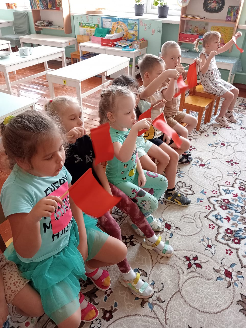 ✔ жалаулармен тыныс алу жаттығуларын орындады