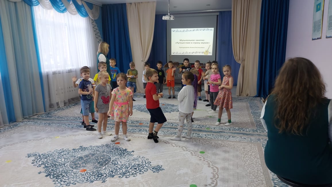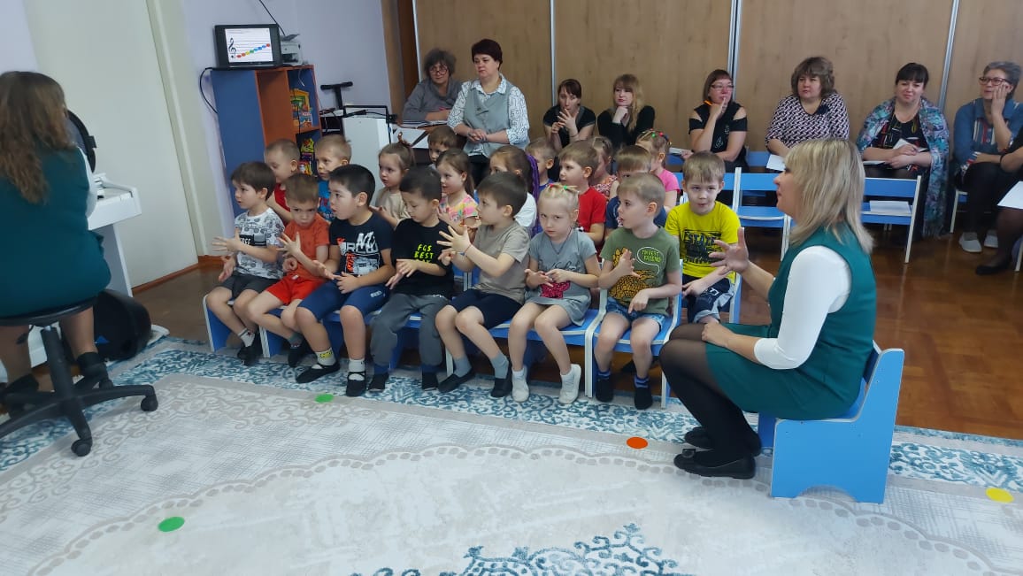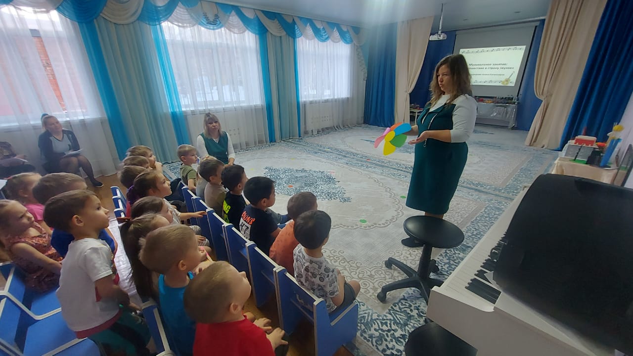 27.01.2023 жылы №3 "Балабақша мен отбасының сындарлы өзара іс-қимылы жеке тұлғаның тұтас дамуы мен баланың табысты әлеуметтенуінің шарты ретінде" педагогикалық кеңесіне дайындық аясында Музыкалық жетекші А.Е. Прокуророва "Дыбыстар еліне саяхат", "Ягодки" ересектер тобында ашық ұйымдастырылған іс-шаралар өткізді. Алена Евгеньевна балалардың қимыл-қозғалыс, ойын жаттығуларын орындау арқылымаақ сезімін дамытуға ықпал етті – "Секірулер"," Ритмикалық жол", "Аяқты ашумен жартылай отыру"," Бүйірлік Кантер", Стрельникова әдістемесі бойынша тыныс алу жаттығулары: " Алақандар"," Мысық"; рухани мәдениетті және музыкаға деген қызығушылықты қалыптастыру-музыка тыңдады П. И. Чайковскийдің "Ағаш сарбаздарының шеруі"; музыканың сипатын тыңдау қабілетін дамытты – шеру, ән, би; музыкалық-дидактикалық іс-әрекеттің әртүрлі түрлерін қолдана отырып, үйлесімді ән айту қабілетін нығайту, кіріспеден кейін уақытында ән айтуды бастау. Балалар барлық тапсырмаларды ынтамен орындады, белсенді және эмоционалды болды. Балалар мен мұғалімнің өзара әрекеттесу сипаты сенімді, мейірімді, балалар қызығушылық танытты.