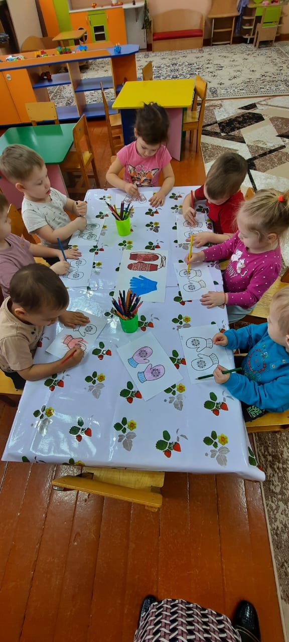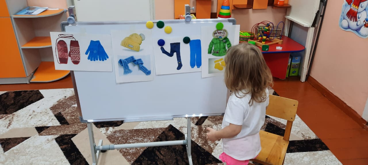 Коммуникативті және танымдық дағдыларды дамыту үшін балалармен "Қысқы киім ", "Киім не үшін қажет ", "Киімді атаңыз және көрсетіңіз ", "Қыста адамдар не киеді " әңгімелері өткізілді. "Киімді атаңыз ", "Біліңіз және атаңыз ", "Фигураны алыңыз"дидактикалық ойындары.
