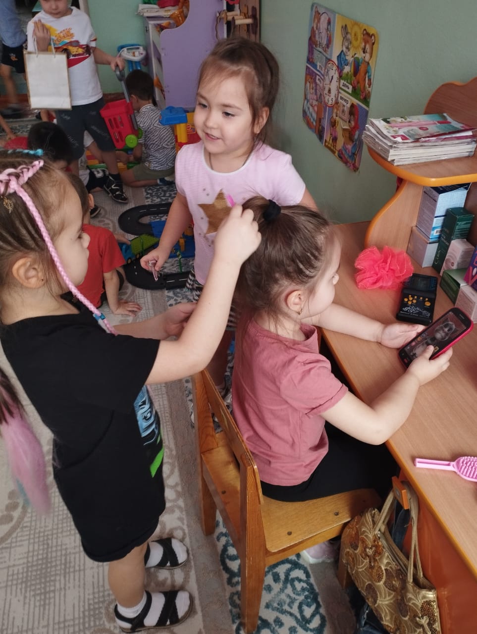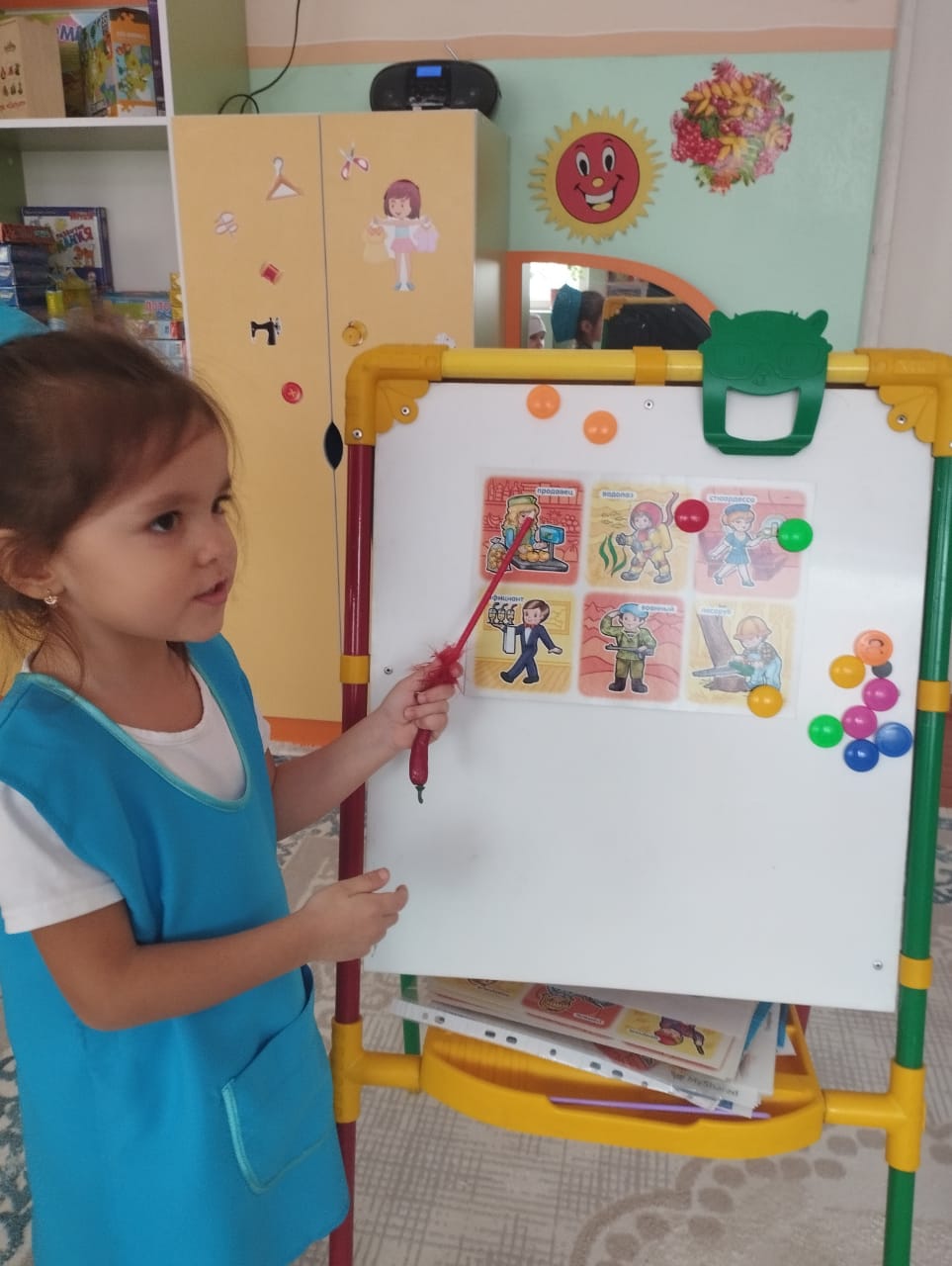 "Сұлулық салоны", "Құрылыс", "Балалар ауруханасы" рөлдік ойындарының көмегімен балалар өздерінің маңыздылығын түсініп, мамандықтары бойынша көкжиектерін кеңейтті.