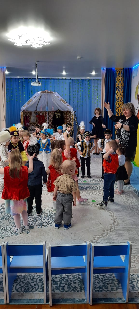 Наурыз мейрамы-бірлік, Көктем, Бақыт мерекесі. "Қош келдің Наурыз" мерекесі кезінде "Ягодки" ересектер тобында жақсылық, көңілділік пен қуаныш атмосферасы орнады: балалар өлең айтты; "Наурыз ай", "көктемді қарсы алайық" көңілді әндерін шырқады, жарыстарға қызығушылықпен қатысты - "Асық", ойын ойнады"", " Киіз үй құрастыру"; тамаша би - "Қара жорға" орындалды. Көктем екеуміз бірге балалар ауылда, шалғындарда тәртіп орнатып, бұлақ туралы ұмытқан жоқпыз.Әже Наурыз көже мерекесіне арналған негізгі тағамды дайындау дәстүрін көрсетті.Мереке өте көңілді, түрлі - түсті және қызықты болды!!!