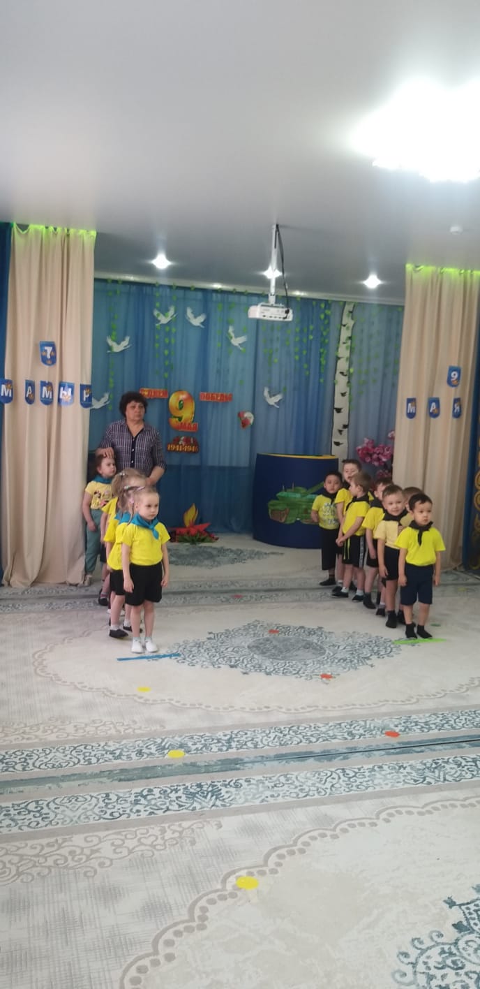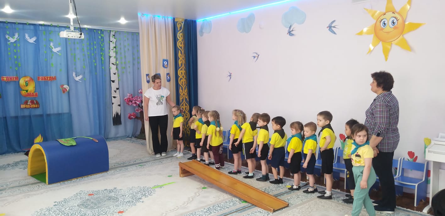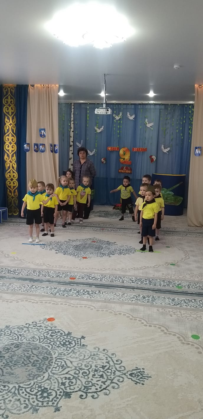 04.05.2023 ж., дене шынықтыру нұсқаушысы Ударцева О.В. «Гномики» және «Солнышко» ортаңғы топтарының балаларын 7 мамыр Отан қорғаушылар күніне және 9 мамыр Жеңіс күніне арналған «Жас Отан қорғаушылар» атты көңілді дене шынықтыру ойынына шақырды. Жігіттер күш, ептілік, батылдықты қалай дамытатынын көрсетті: «Мергендер» – гимнастикалық орындықта жүру, доғаның астынан төрт аяқпен жорғалау, қоржынға сөмкені лақтыру; «Кедергілер жолы» - туннель, көлбеу тақтамен жүру, «ағыстан» секіру; «Пилотка», «Туға кім жылдам» эстафеталары. Ойын-сауық қызықты әрі қызықты өтті, балалардың көңілінен шықты. Көрсетілген батылдық, ептілік және жылдамдық үшін жауынгерлер құрғақ рационға құқылы - дәмді рацион!