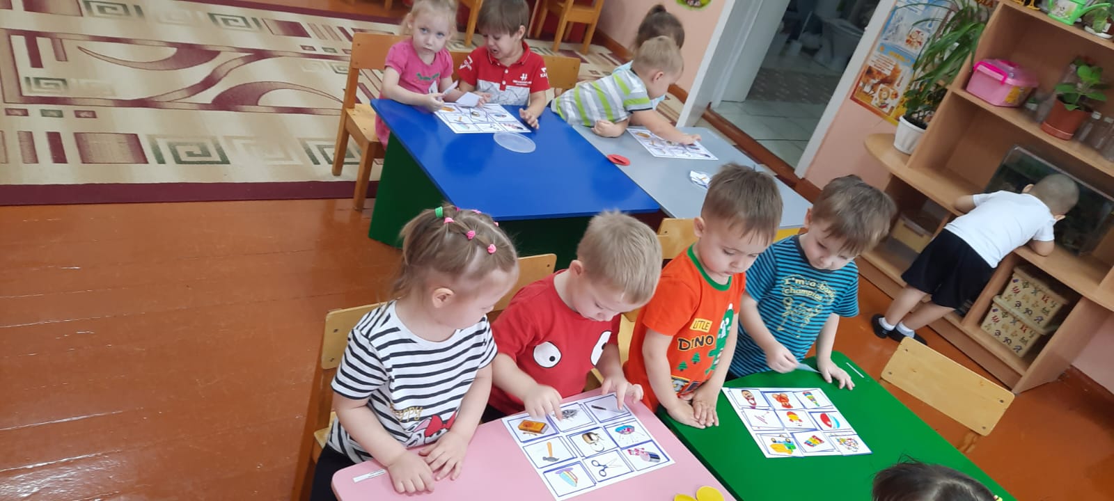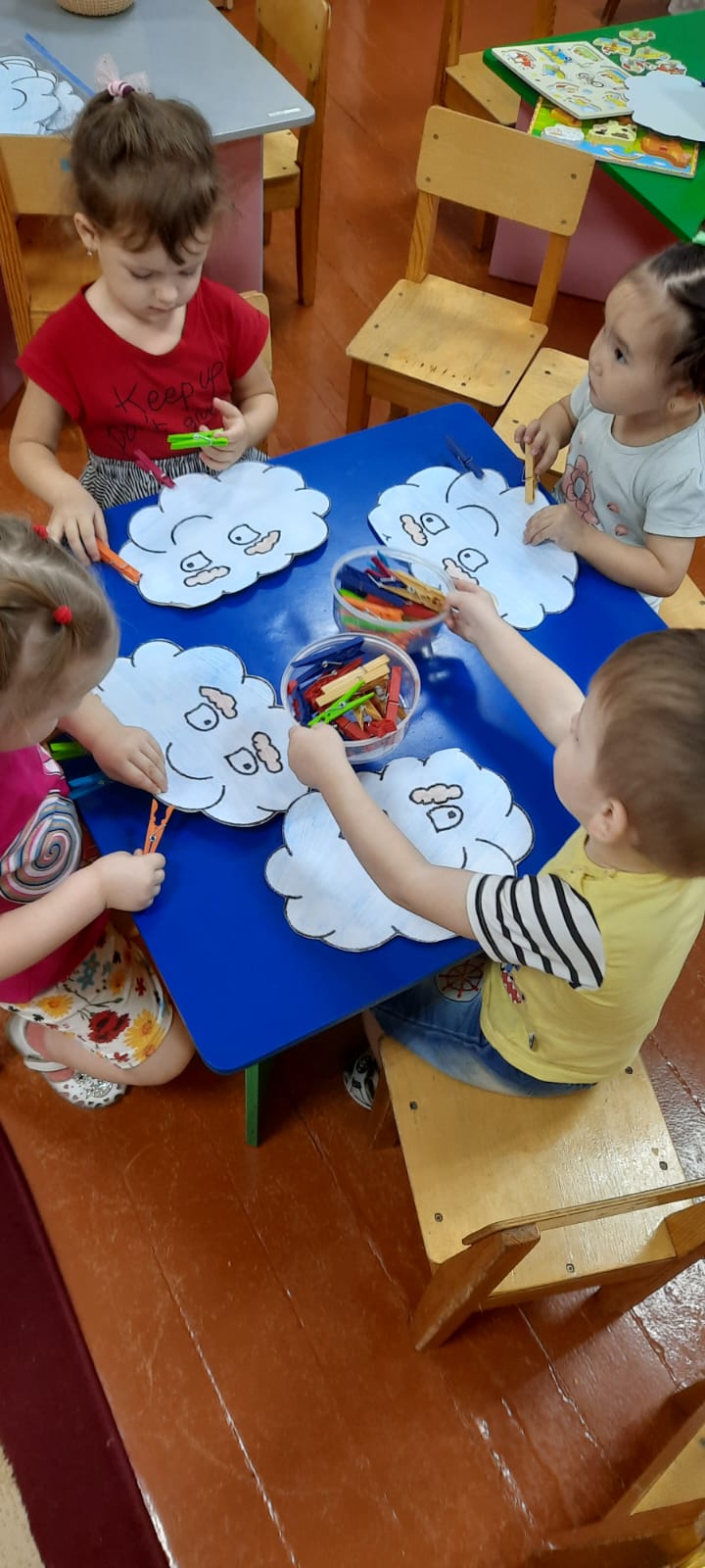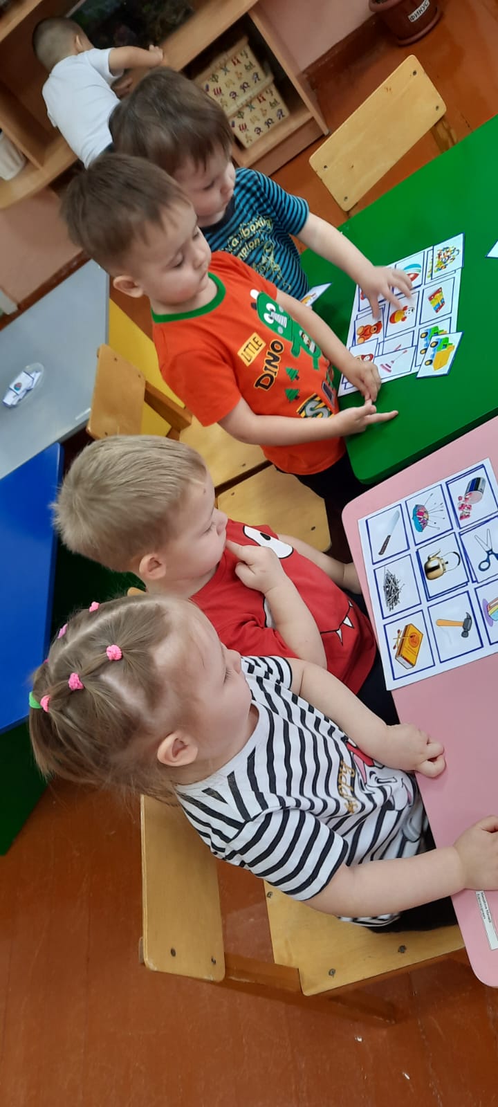 Олар балалармен дәстүрлі емес әдіспен сурет салды-саусақтармен, сондай-ақ түрлі-түсті қарындаштармен сурет салу. Олар екі топқа бөлінді, "қауіпті-қауіпті емес заттар"ойынын ойнауды үйренді,(лото).
