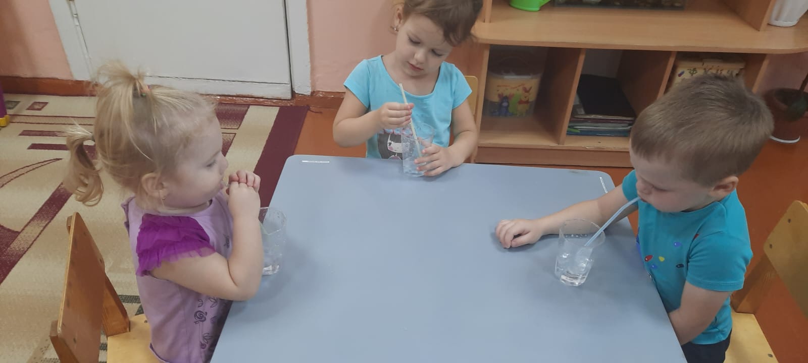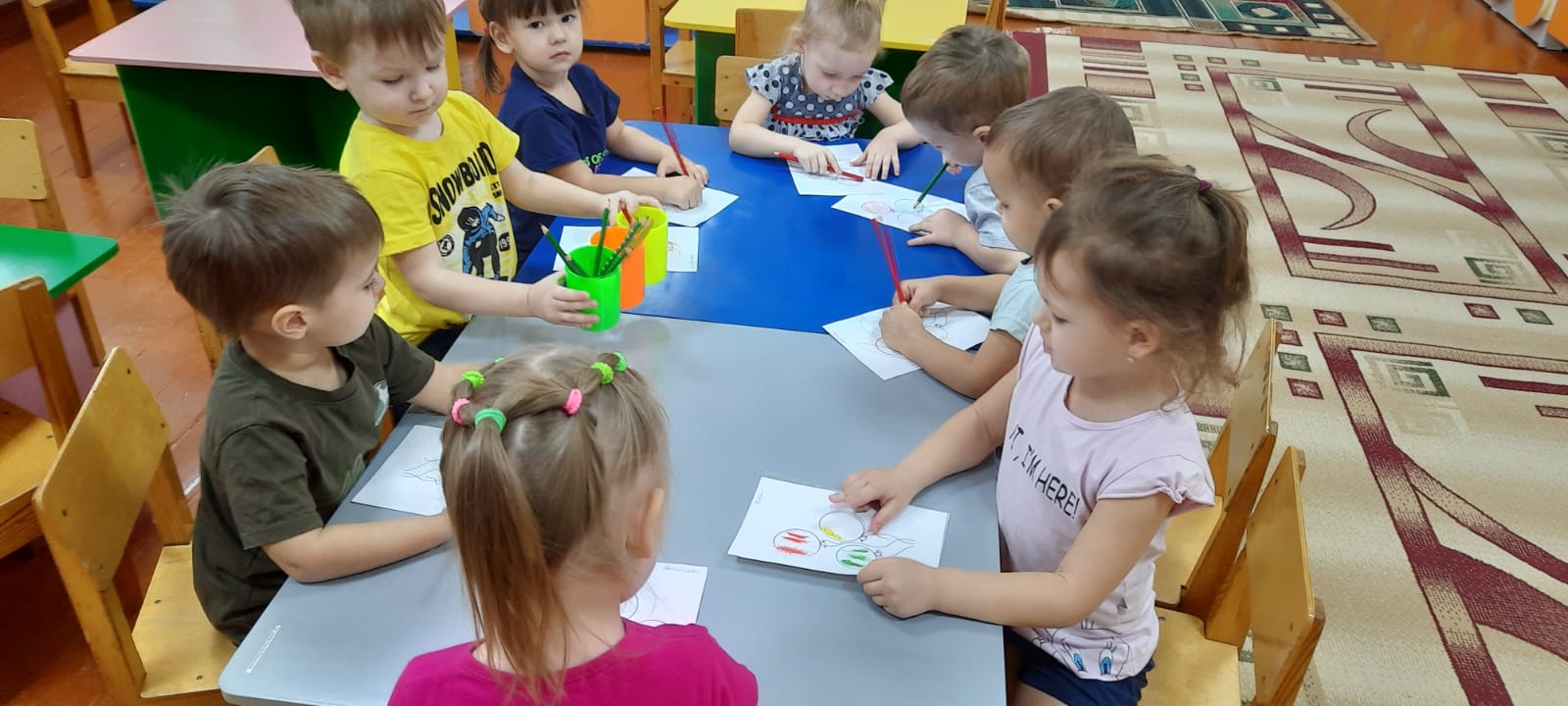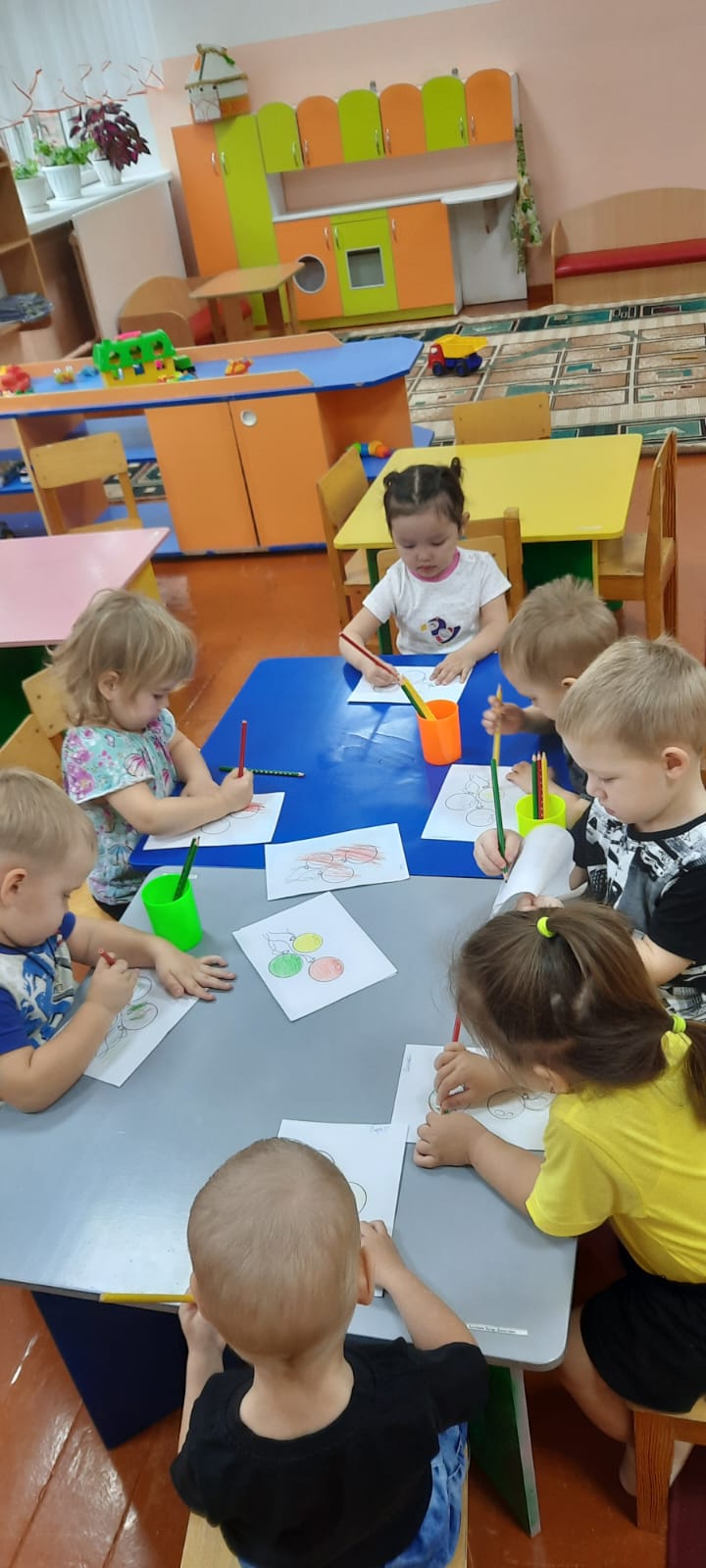 Олар балалармен дәстүрлі емес әдіспен сурет салды-саусақтармен, сондай-ақ түрлі-түсті қарындаштармен сурет салу. Олар екі топқа бөлінді, "қауіпті-қауіпті емес заттар"ойынын ойнауды үйренді,(лото).