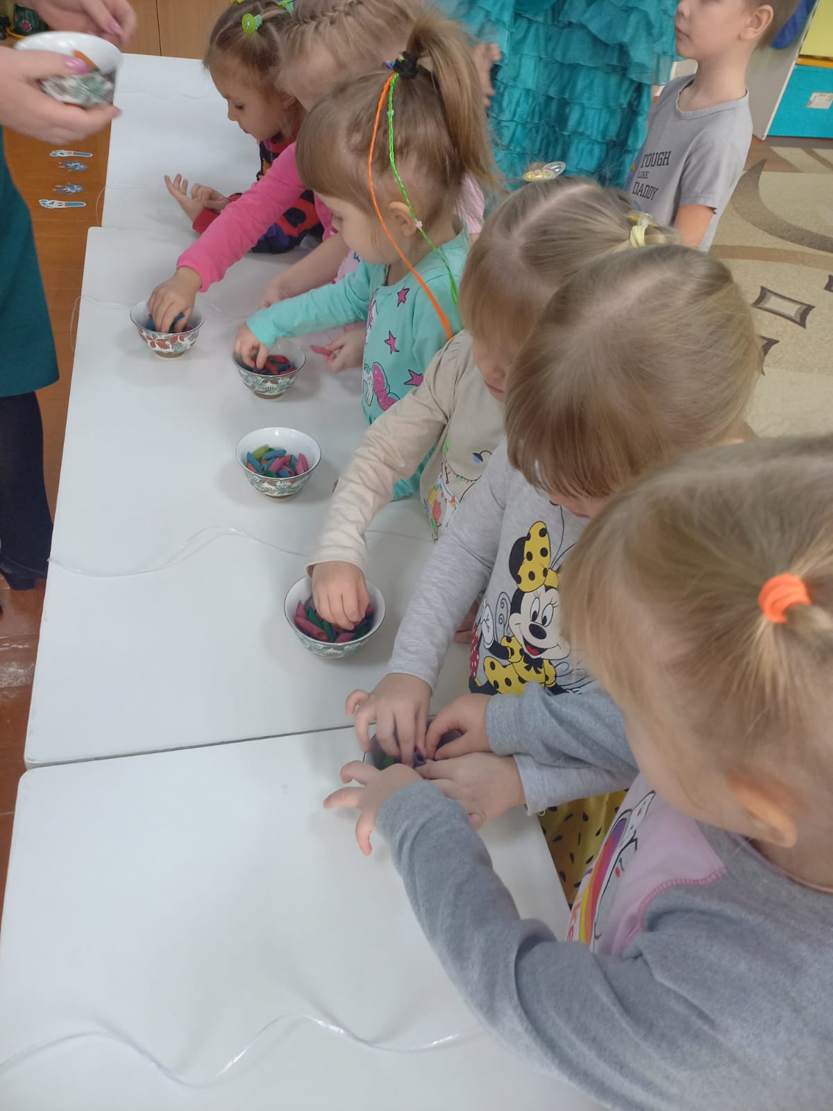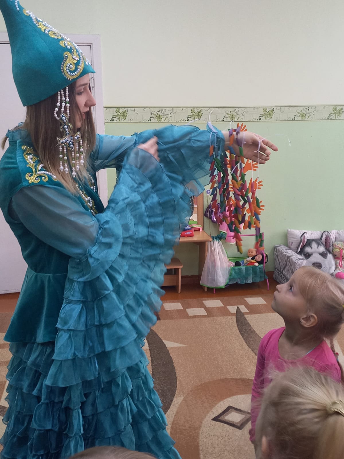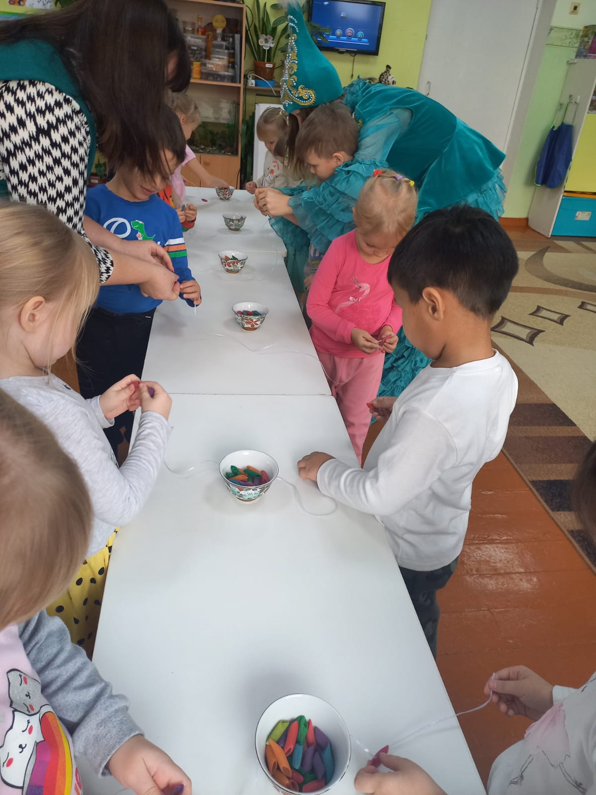 2022 жылғы 7 желтоқсанда ШҚО білім басқармасының Өскемен қаласы бойынша білім бөлімінің «№10 «Колокольчик» балабақша-бөбекжайы» КМҚК - да 2 "мектепке дейінгі балаларды жобалық қызмет арқылы жалпыадамзаттық және ұлттық құндылықтарға баулу" педагогикалық кеңесіне дайындық шеңберінде "Колобочки" ересектер тобында "қазақ балалары" жобасы тақырыбы бойынша ашық ойын қызметі ұйымдастырылды ұлттық әшекейлер". Балалар кедергілер жолын еңсеріп, әдемі Айсұлуға көмектесу үшін қызықты сапарға шықты. Қызықты, танымдық тапсырмаларды орындап, балалар керемет Білім көрсетіп, Айсұлу үшін моншақ алуға көмектесті. Шығармашылық шеберханада нағыз зергерлер сияқты Айсұлу үшін моншақтар жасалды. Барлық іс-шаралар барысында балалар белсенді және көңілді болды.