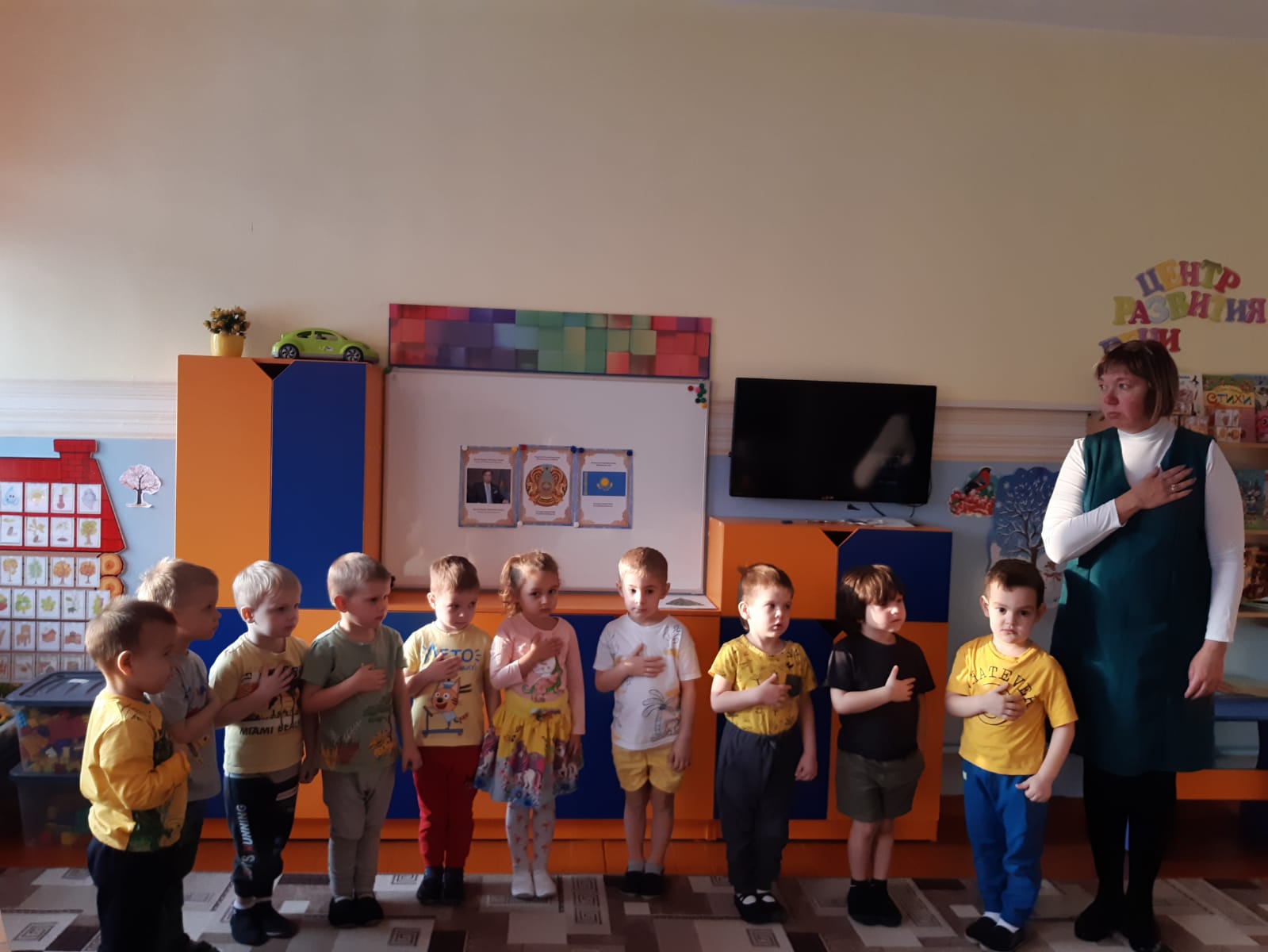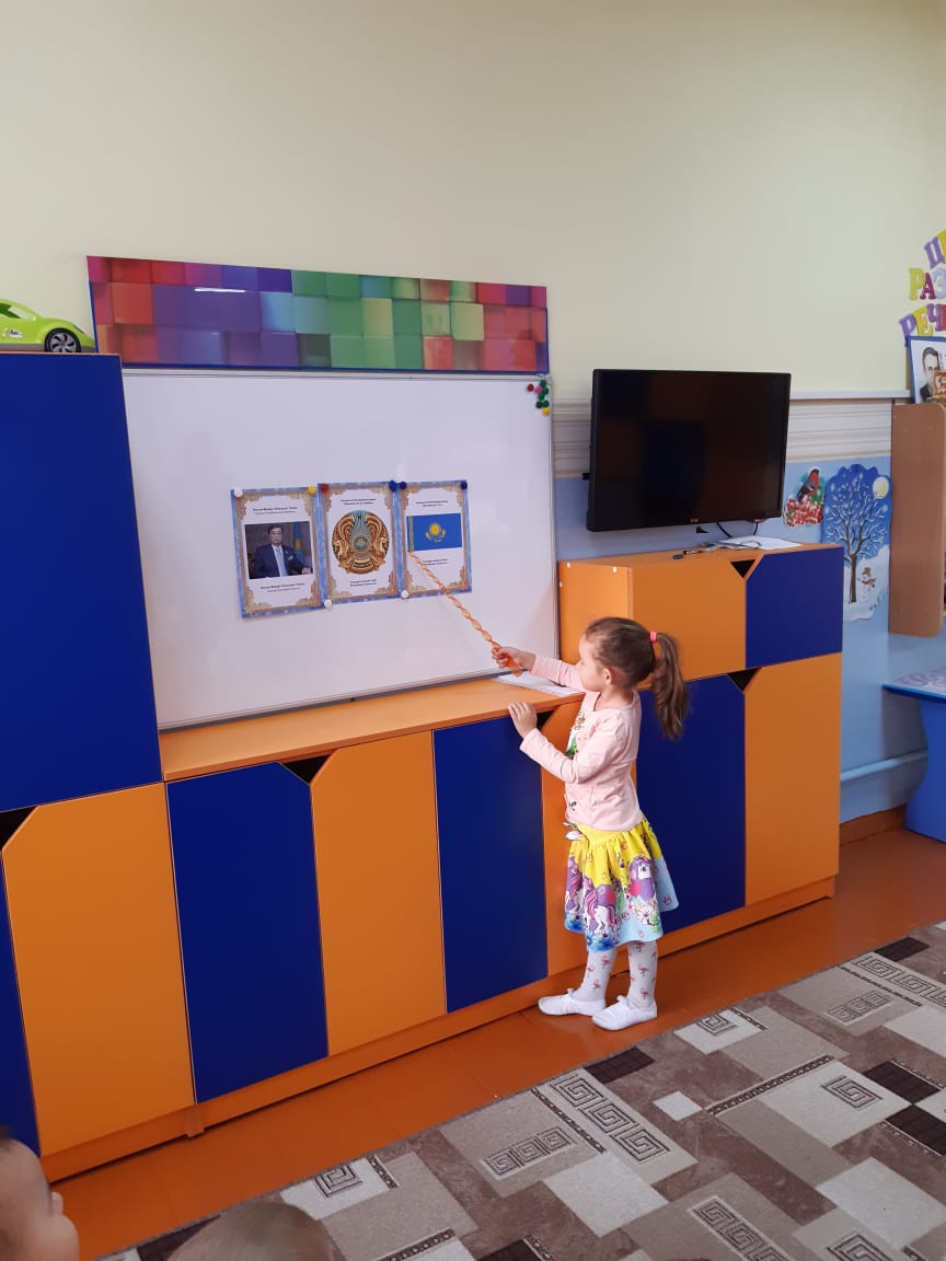 Сәуле қуыршақ апта бойы балаларға қонаққа келді. Балаларға арналған «Менің Отаным-Қазақстан» атты танымдық бейнефильмін көрсетті. «Туған қала және оның көрікті жерлері», «Республикамыздың несі бай», «Қазақстан Республикасының рәміздері» атты әңгімелер өткізілді. (танымдық, коммуникативті дағдыларды дамыту). Сіз саусақ гимнастикасын үйрендіңіз бе: «Отбасы». Шығармашылық іс-шараларға белсенді қатысты. «Мерекелік отшашу», «Киіз үй», «Кесе» атты сурет салды, мүсіндеді, өтінім жасады. (шығармашылық қабілеттерін дамыту). Балалар түрлі ойындар ойнады: «Ақылды микрофон», «Мерекелік киіз үй құрастыр», «Бір өрнекті тап». (ойлау, зейін, есте сақтау қабілеттерін дамыту). Мұғалімдермен бірге балалар «Түбетейка», «Кім жасырды?» ашық ойынын үйренді. (зейін, есте сақтау қабілетін дамыту). Патриоттық атмосфераны қалыптастыру үшін «Қалайсың? Жақсы!". Апта соңында балалар мұғаліммен бірлесіп тақырыпты бекіту үшін «Менің Отаным-Қазақстан» кластерін құрады. Балалар өз отбасына, Отанға деген сүйіспеншілік туралы сөздер айтты. Балалар үшін апталық үлкен қызығушылықпен, мазмұнды және пайдалы өтті.