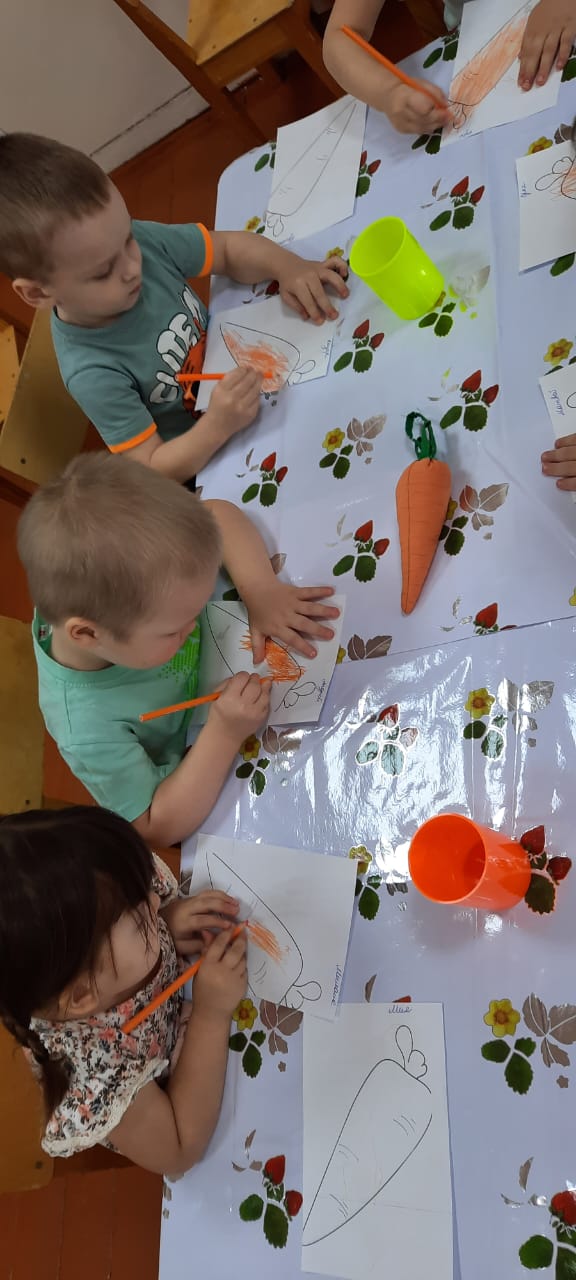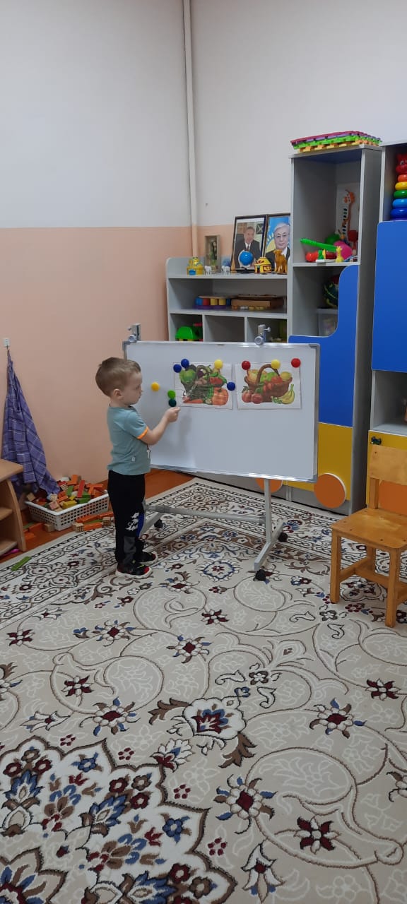 Шығармашылықты дамыту үшін: алмұрт, алма, сәбіз салынды; жүзім,қияр мүсінделді. Біз көкөністердің дәмін татып көрдік.