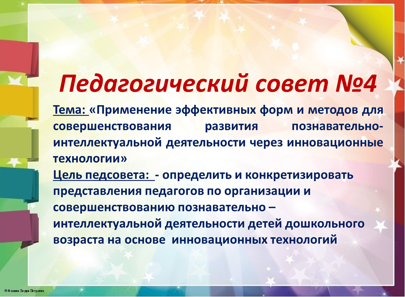 31.03.2023 жылы ШҚО білім басқармасының Өскемен қаласы бойынша білім бөлімінің " №10 "Колокольчик" балабақша - бөбекжайы"КМҚК - да "инновациялық технологиялар арқылы танымдық - зияткерлік қызметті дамытуды жетілдіру үшін тиімді нысандар мен әдістерді қолдану" №4 педагогикалық кеңес өткізілді. Шығармашылық топ педагогтары "ойнайық" балабақшасының педагогтары үшін шеберлік сыныптарын дайындап, өткізді: әдіскер, Г.и. Козлова мектеп жасына дейінгі балалардың математикалық қабілеттерін дамытудың басым әдісі - маңызды міндеттер кешенін шешуге көмектесетін модельдеу туралы айтты. Ми нейропластикасын жақсартуға, мектепке дейінгі жаста танымдық қабілеттерін дамытуға мүмкіндік беретін "Майнд – фитнес" жаңа білім беру технологиясы туралы тәрбиеші Е. и. Мехнина; нейрогимнастиканы қолдану тәжірибесімен тәрбиешілер - Е. В. Горбачева және А. В. Хлыновская бөлісті.; мектеп жасына дейінгі балалардың шығармашылық ойлауын дамыту мақсатында "Друдлы" техникасын қолдануды а. в. Кирьянова көрсетті; мектеп жасына дейінгі балалардың зейінін шоғырландыру және есте сақтау қабілетін дамыту құралы ретінде "Мемори" ойын технологиясын қолдану туралы тәрбиеші А. А. Турнаева айтты..