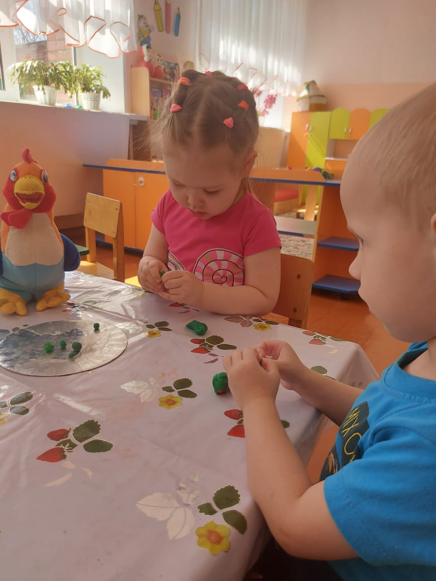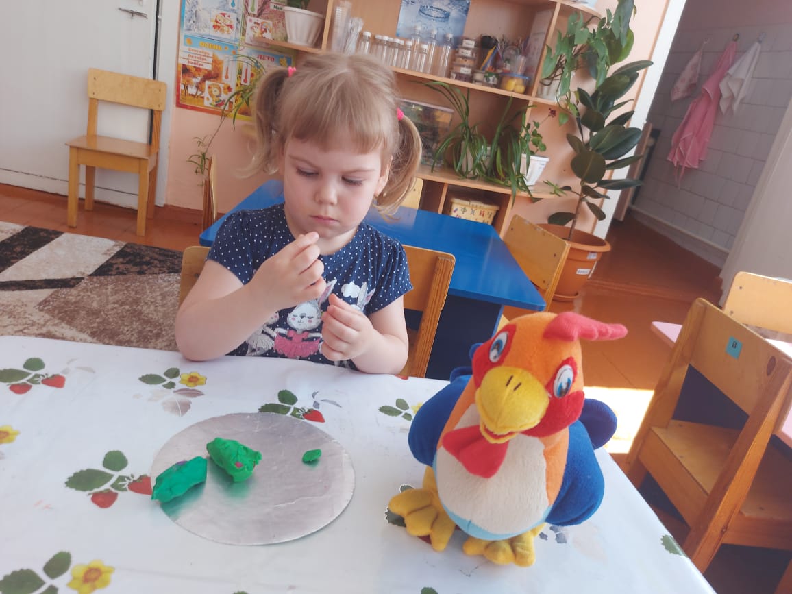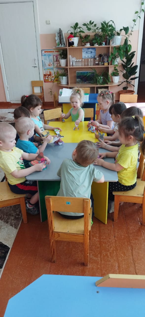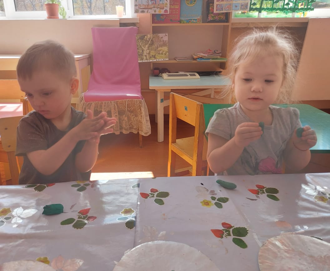 Олар сурет салды:" бұлт пен жаңбыр", "әдемі кесе", "көктем, көктем көшеде"; мүсінделген:" аюға арналған ем", ұжымдық жұмыс "Біз Кокерельді бұршақпен тамақтандырамыз". "Біз орамалды безендіреміз" қосымшасы, "құстарға арналған үй" геометриялық фигуралардан.