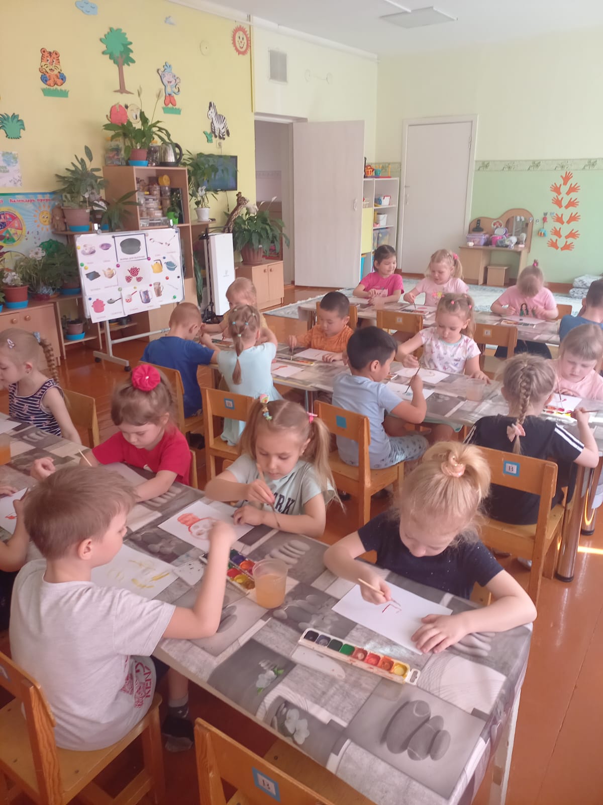 Балалармен "Мерекелер", "көктемгі белгілер", "көктемде Жануарлар"тақырыптарында әңгімелесті. Олар жұмбақтар шешті, иллюстрацияларды қарастырды, бақылап, ашық ойындар ойнады. Олар дидактикалық ойындар ойнау арқылы білімдерін нығайтты: "түрлі-түсті ленталар", "дұрыс сана", " кім қайда?". Шығармашылық шеберханада олар "ыдыс-аяқ", "пиаланы безендірді". Апта ішінде танымдық, моторлық, шығармашылық және коммуникативтік дағдылар дамыды.