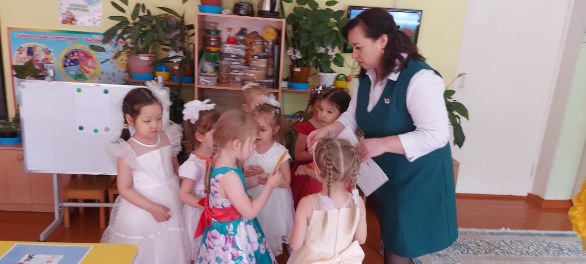 19.05.2023 жылы "№10 " Колокольчик" балабақша-бөбекжай" КМҚК, "Колобочки" ересектер тобында «2022-2023 оқу жылындағы жұмыс қорытындысы" N5 педагогикалық кеңесіне дайындық аясында тәрбиеші А. В. Невзорова балалармен "Тауыққа арналған қауырсындар" ашық қорытынды ұйымдастырылған ойын қызметін өткізді. Тауықта Түлкі барлық қауырсындарды жұлып алды, ал барлық қауырсындарды табу үшін картада көрсетілген кедергілерді жеңу керек.