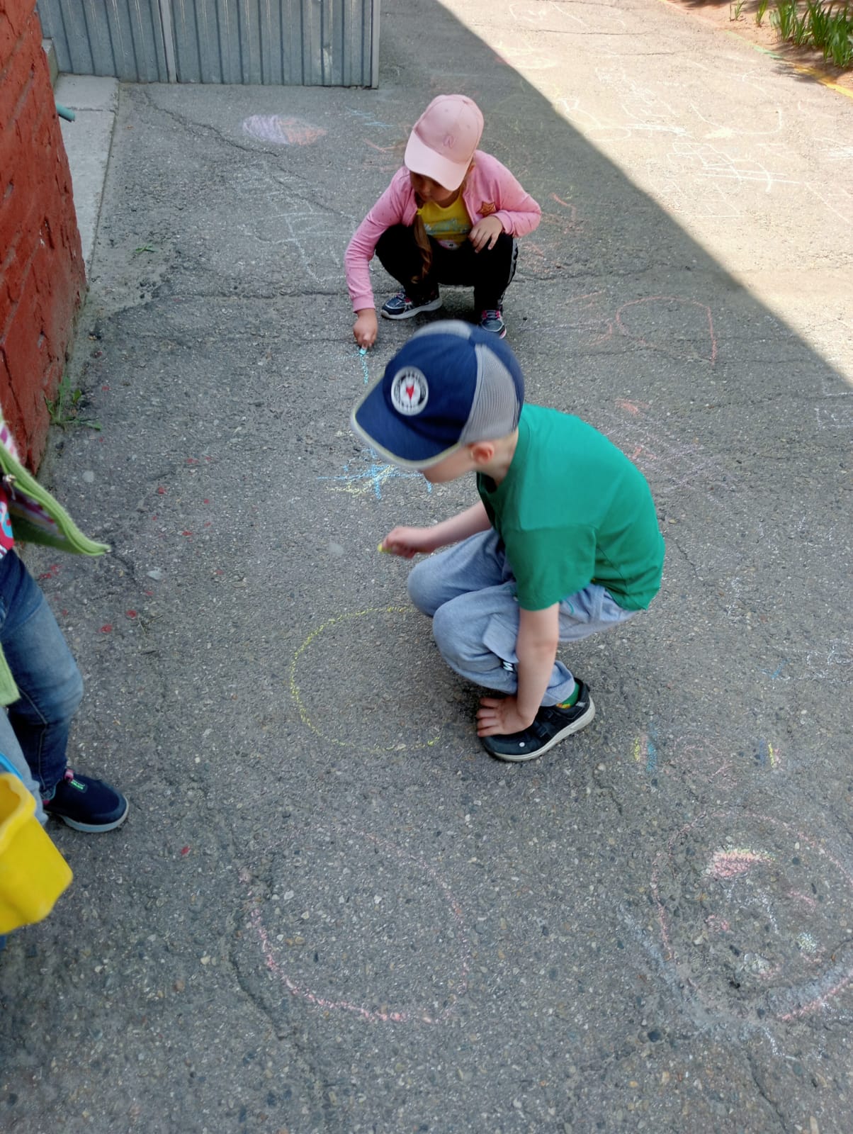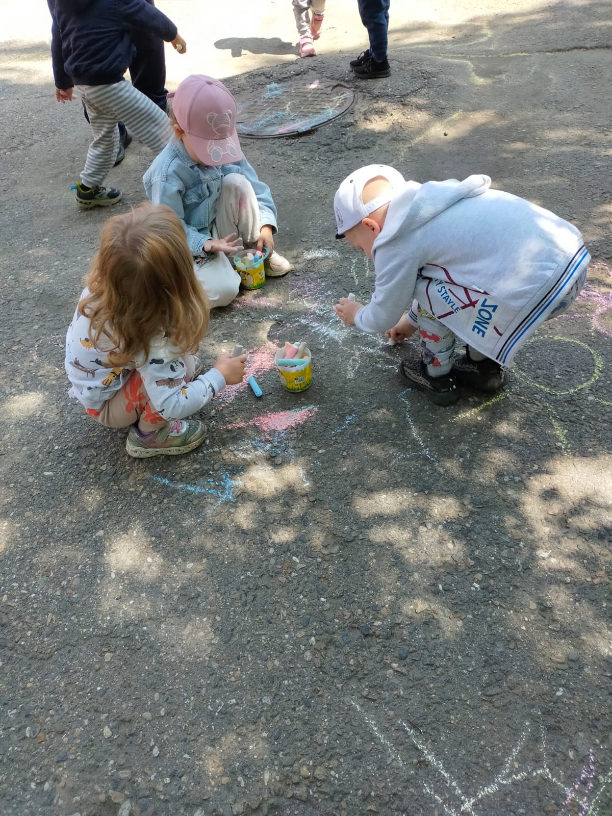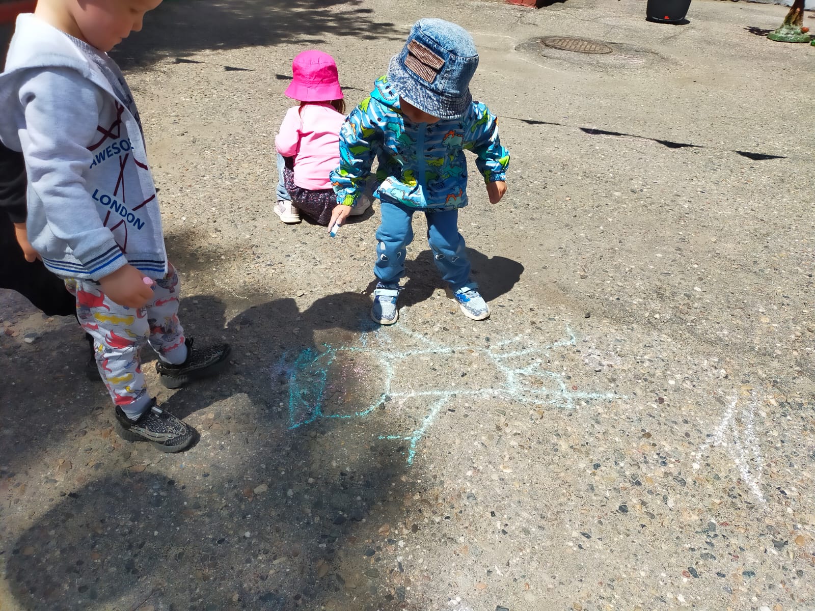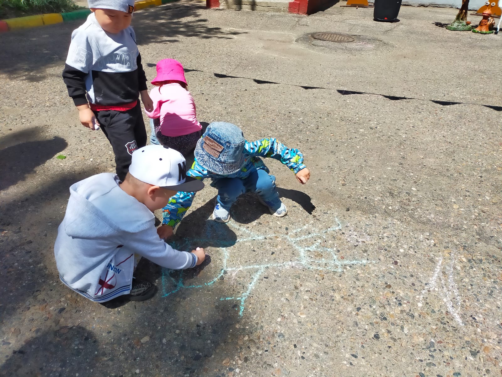 Көңілді "Балалық паравозикте” Тедди аюмен бірге балалар өте қызықты жерлерге барды –"Би" станциясында оларды көңілді музыка қарсы алды, онда олар қуана биледі. "Ойын" станциясында - "Тюбетейка” , “Үлгіні жина", "Киіз үй сал" көңілді ойындары болды. Содан кейін біздің паравозигіміз “Дене шынықтыру" станциясында тоқтады, онда оларды Дюдюка қарсы алды-алдымен балалар қиын жолдармен жүрді, содан кейін сабын көпіршіктерінің үлкен қорабын тапты. Содан кейін біз "Сурет салу” станциясында болдық - онда клоун Веселушка түрлі-түсті қарындаштарды ұсынды және асфальтта сурет байқауын ұйымдастырды, достық жеңіске жетті-суреттер өте қызықты және күлкілі болды. Соңғы аялдама "дәмді", онда балалар тәтті тосынсыйлар күтіп тұрды.