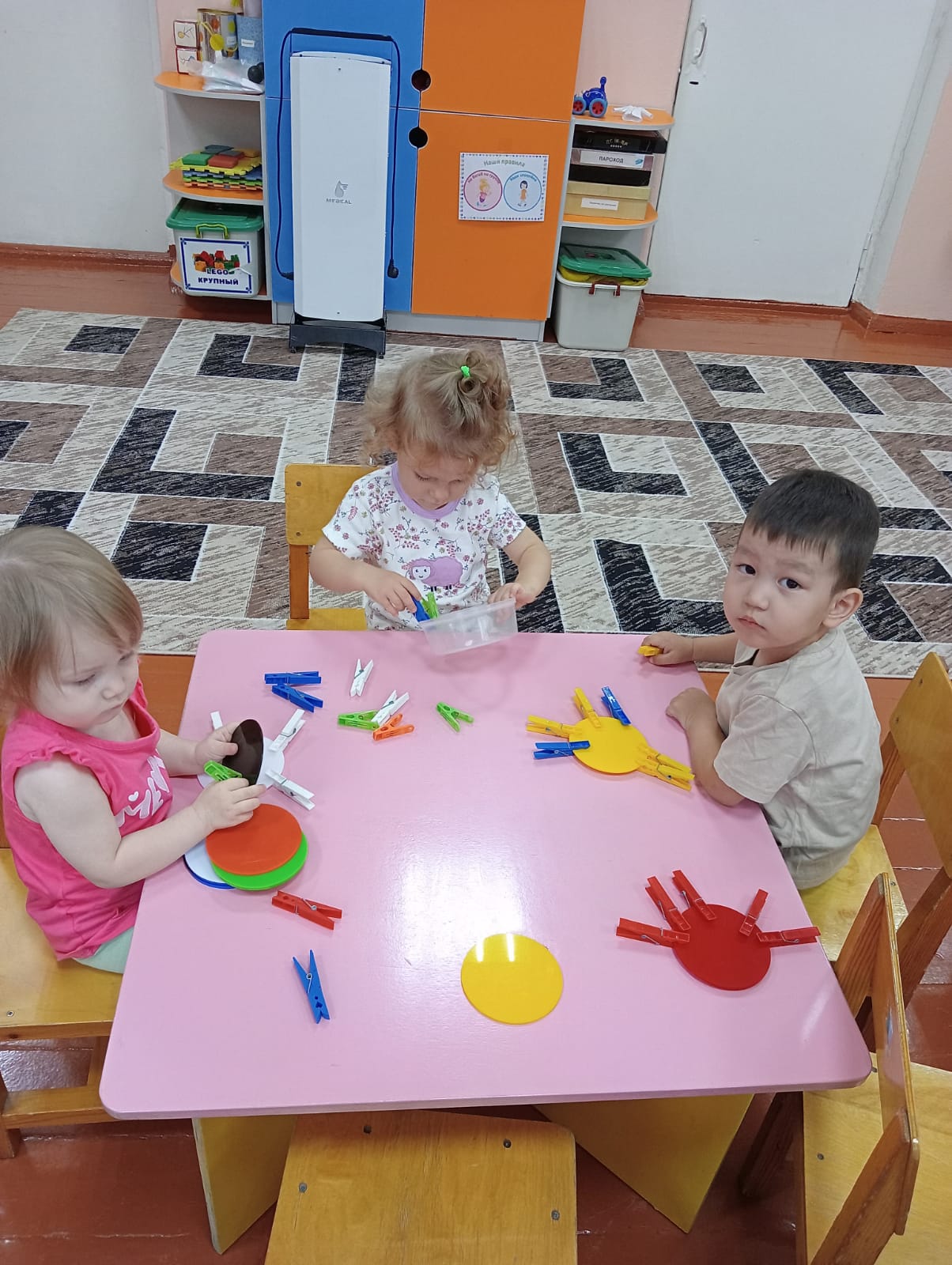 "Пчелки" тобында апта көңілді және әртүрлі өтті! Балалар ойын,мотор, интеллектуалдық дағдыларын дамытты. Олар "басқатырғыштар","түс бойынша жинаңыз", "достарды тамақтандырыңыз"дидактикалық ойындарын ойнады. Олар сенсорлық қабылдауды дамытты,Су Джок шарларымен ойнады, киім қыстырғыштары бар ойындар ойнады, осылайша қолдың ұсақ моторикасын дамытты. Балалар қызықты болды.