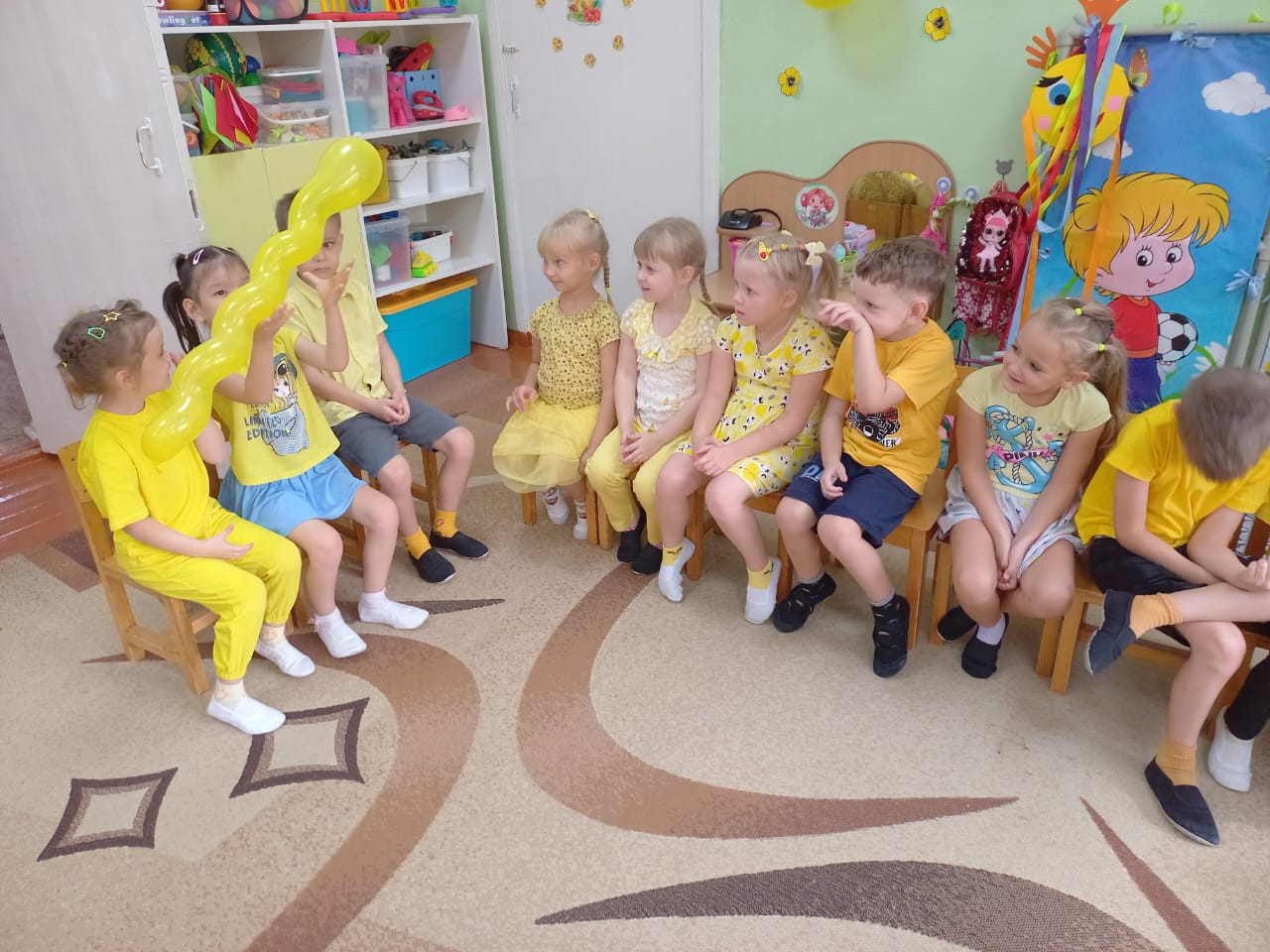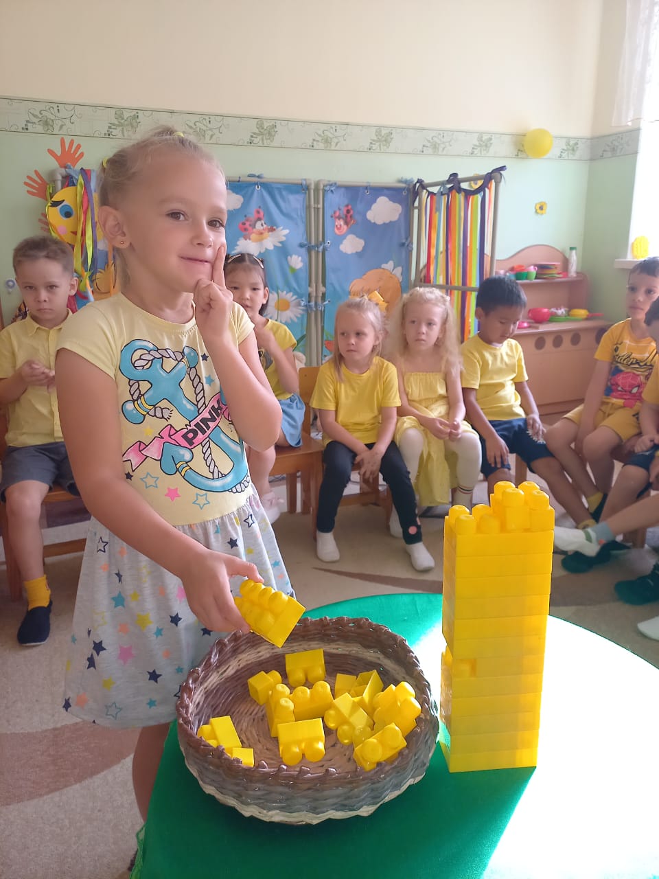 "Колобочки" мектепалды дайындық тобындағы апта көңілді және қызықты өтті! Осы аптада бізде " сары күн "болды және балаларым екеуміз" сары сөздерден мұнара жаса"," Комплимент"," көңіл - күй гүлі"," сары жұмбақтар","сары ойыншық тап" ойындарын ойнадық. Әңгіме құрастыруды үйренді. Апта ішінде мотор, коммуникативті, танымдық және шығармашылық дағдылар дамыды.