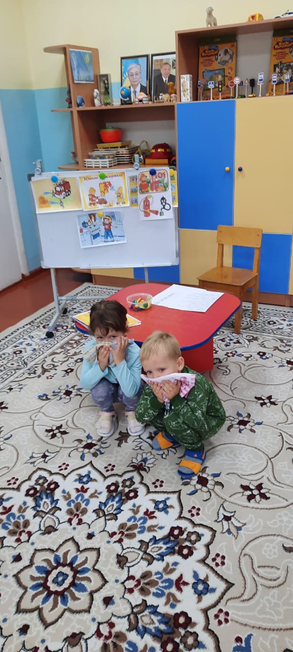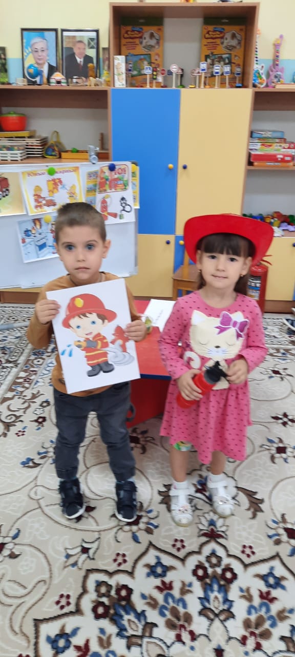 Апта қызықты және көңілді өтті. Балалармен әңгімелесіп, өрт қауіпсіздігі ережелерімен таныстырып, өрт кезінде өздерін қалай ұстау керектігін түсіндірдік. Апта тақырыбына сай сурет салдық. Топ сөйлейтін қабырғаға «Өрт сөндірушілер» сурет көрмесін өткізді. Апталық жемісті де тәрбиелі болды.
