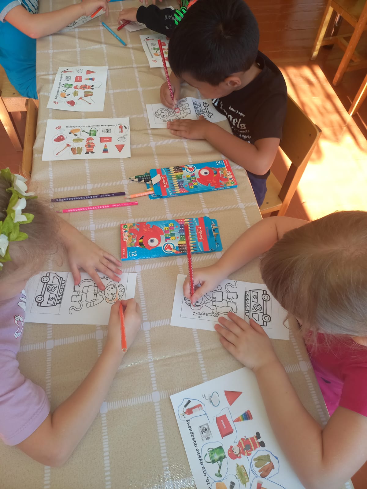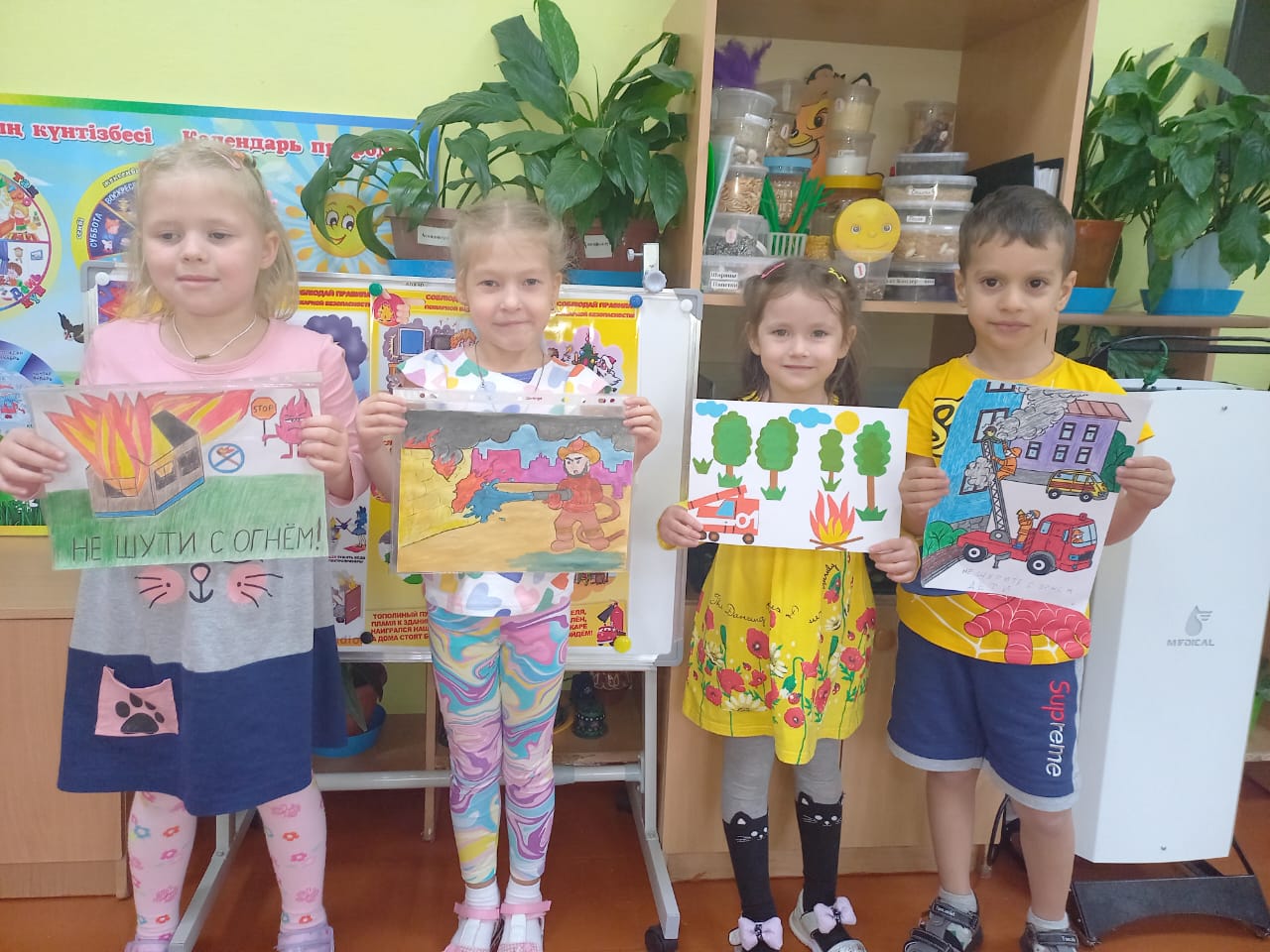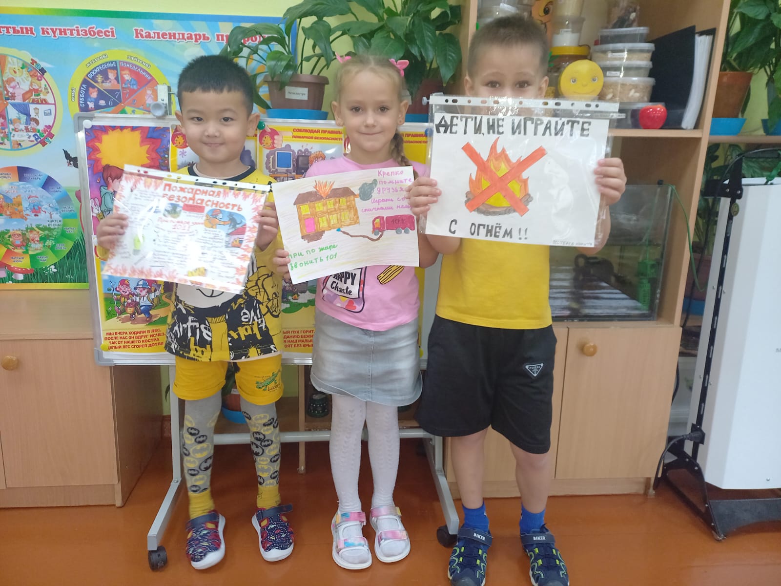 "Колобочки" мектепалды даярлық тобында "өрт қауіпсіздігі" апталығы өткізілді бір апта ішінде балаларды өрт сөндіруші мамандығымен, өрт қауіпсіздігі ережелерімен таныстырды, сондай-ақ балаларды өрт кезінде өзін қалай дұрыс ұстау керектігін үйретті. Әңгімелесіп, түрлі ойындар ойнады:" жанып - жанбайды", " от - біздің досымыз ба, жау ма?", "Біз өрт сөндірушілерміз", " өрт сөндірушіге не қажет?", "Блум Текшесі". Балалар мен ата-аналар сурет көрмесіне белсенді қатысты. Балалармен өрт сөндіру бөліміне танымдық экскурсияға барды. Балалар батырлық мамандықтағы адамдармен әңгімелесуден көптеген пайдалы ақпарат алды.