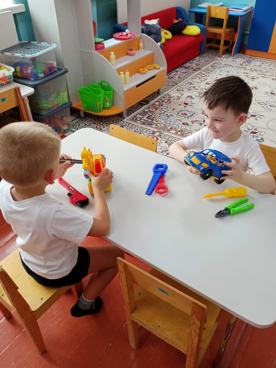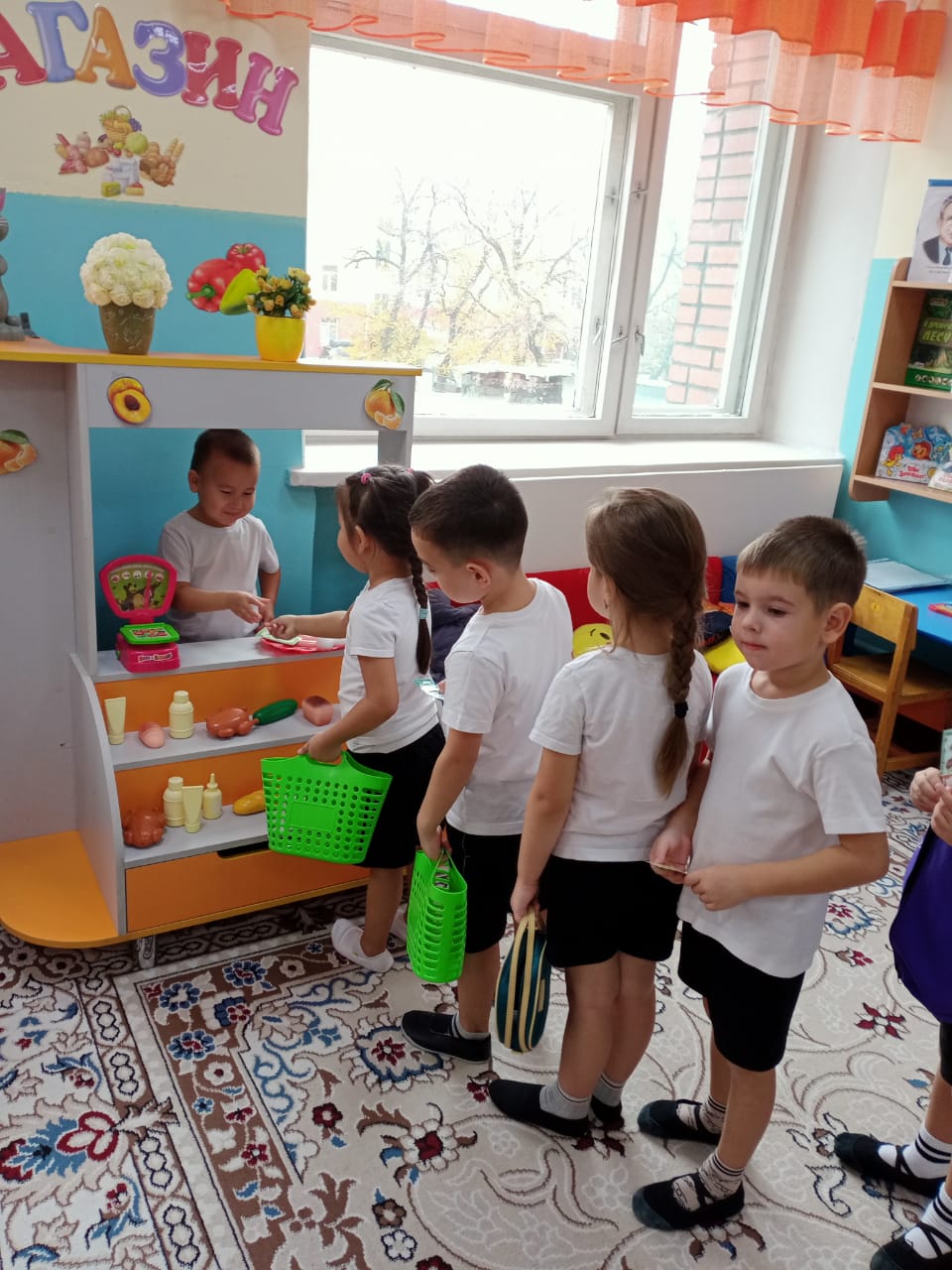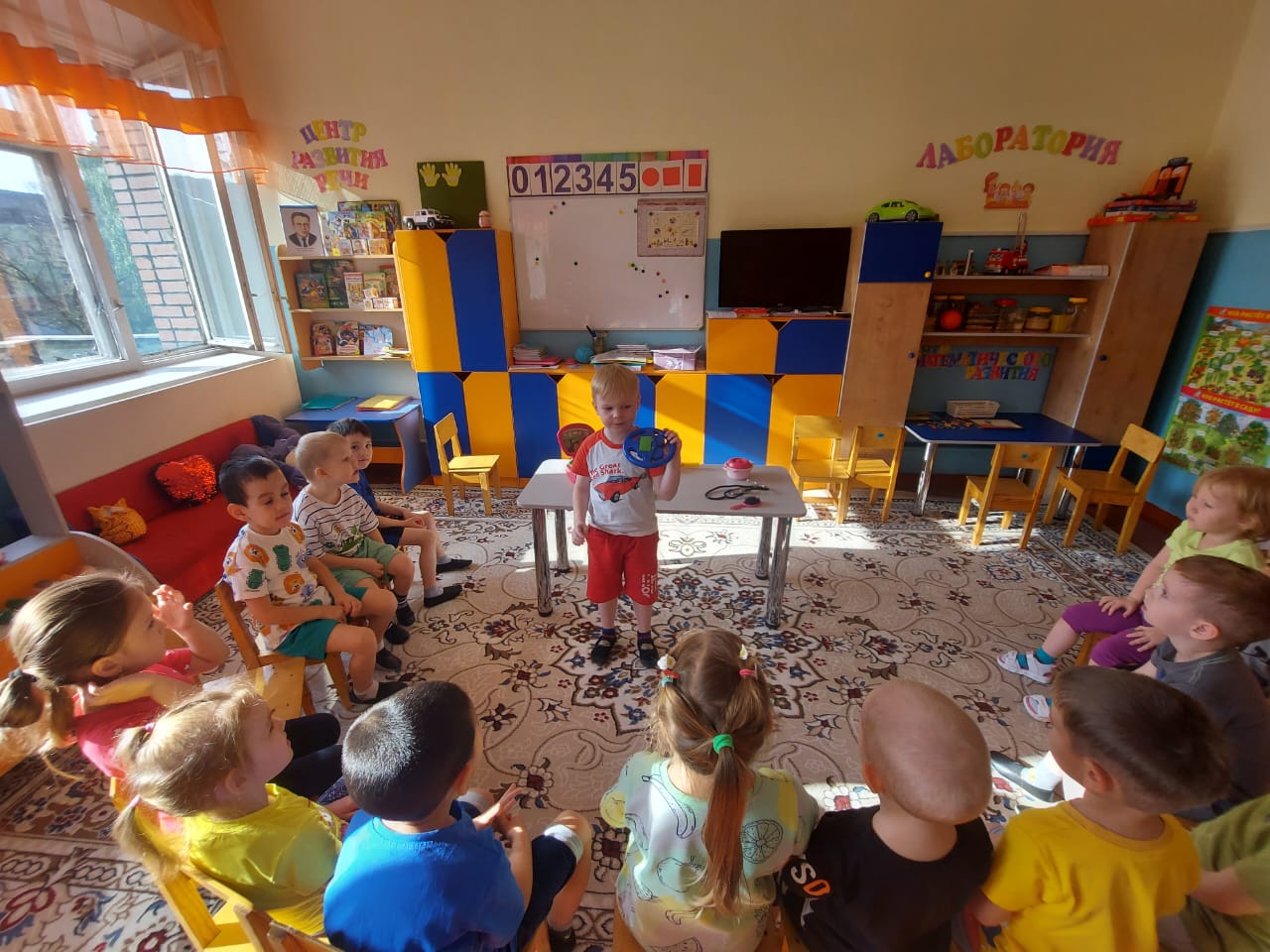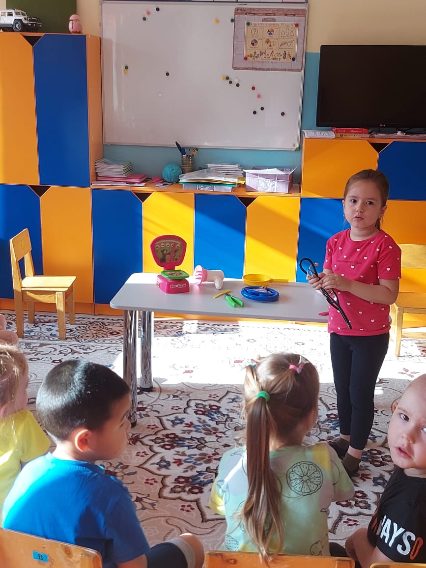 Үлкен топта "Гномики", "Көптеген жақсы және әртүрлі кәсіптер" тақырыптық апталығы өтті. Бір апта бойы балалармен иллюстрацияларды қарап, С.Михалковтың "А, сенде не бар" атты көркем шығармаларын оқыды. "Ата-анам кім жұмыс істейді", "Барлық жұмыс жақсы" деген әңгімелер өткізілді. Танымдық цикл сабағында балалар мамандық әлемі бойынша саяхатқа шығып, "Аспаз", "Дәрігер", "Шаштараз", "Сатушы" мамандықтары туралы білімдерін бекітті. (танымдық, коммуникативтік дағдыларды дамыту). Бір апта ішінде балалар тәрбиешінің көмекшісінің жұмысын бақылап, оған кішігірім тапсырмаларды орындауға көмектесті. Шығармашылық дағдыларды дамыту үшін балаларға "Мамандық" тақырыбы бойынша бояу беттері ұсынылды. Балалар "мамандықты атаңыз"," кім, не істейді?", "Кімге керек "(ойлауды, есте сақтауды, зейінді дамыту). "Супермаркет", "Шаштараз", "Аурухана" (коммуникативтік дағдыларды дамыту) рөлдік ойындарына қатысты.