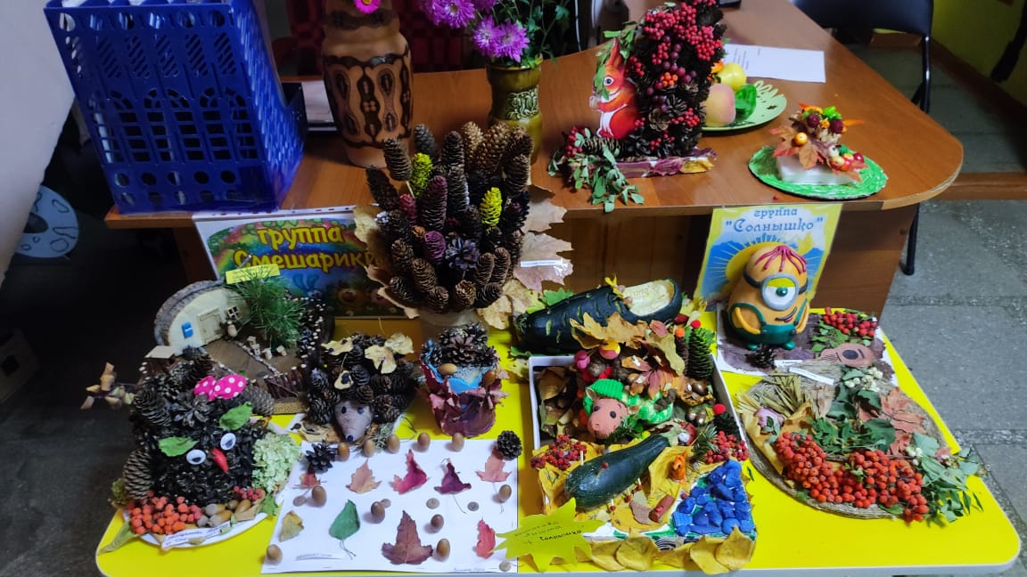 Қатысушылар бізді өздерінің қиялымен, өзіндік ерекшелігімен және шығармашылық қабілеттерімен таң қалдырды - мұнда сіз шырша мен қарағай конустарынан Көңілді кірпілер мен үкілерді, қыста қор дайындайтын тышқандарды, күзгі ғажайыптары бар себеттерді, күзгі гүл шоқтарын, көкөністердің "шедеврлерін" - жасыл қолтырауынды және тіпті цуккини миньонын таба аласыз. Қолөнердің керемет күрделі және әдемі композициялары ұсынылған - "Маша мен аюға қонаққа Күз"," гномдар қоры"," Лесовичка үйі"," баба Яганың күзгі керек-жарақтары"," күз ханымы"," күзгі өрнек","күзгі блюз". Бізбен бірге сәбилерін шығармашылық қызметке тартуға тырысатын ата-аналарға "үлкен рахмет" айтамыз.