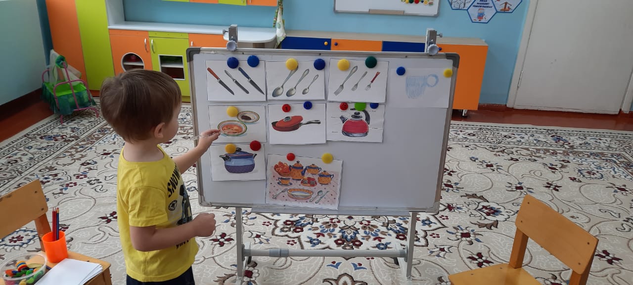 Балалармен "Ыдыс-аяқ қандай" тақырыбында әңгімелер жүргізілді, "ыдыс-аяқ" тақырыбында жұмбақтар жасырдық. Олар "Федорино қайғысы" ертегісін оқыды. Математика негізінде олар "үлкен - кішкентай", "бір - көп" ұғымдарын бекітті, пәндерді ұзындығы бойынша салыстырды. Олар кружка, кілемдегі өрнектер, табақшаларды безендірді. Қуыршаққа арналған кружка, мысыққа арналған табақша. Бір аптада олар қуыршақ театрына барды. Балалар риза болды.