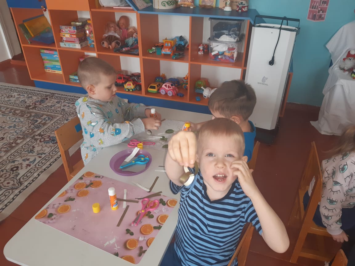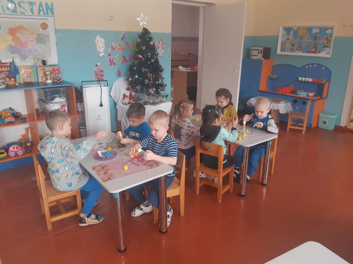 "Гномики" тобында апта өрт қауіпсіздігіне арналды. "От-біздің досымыз, от-біздің жауымыз"әңгімелері өткізілді. Олар Каминге от салып, өрт қалқанын мүсіндеді. Сондай-ақ болды Көк Күн "көк нәрсені тап" ойынын ойнады. Жаңа жылға дайындық туралы ұмытқан жоқпыз. Біз "етік" безендірдік, гирляндия жасадық, шыршаны безендірдік.