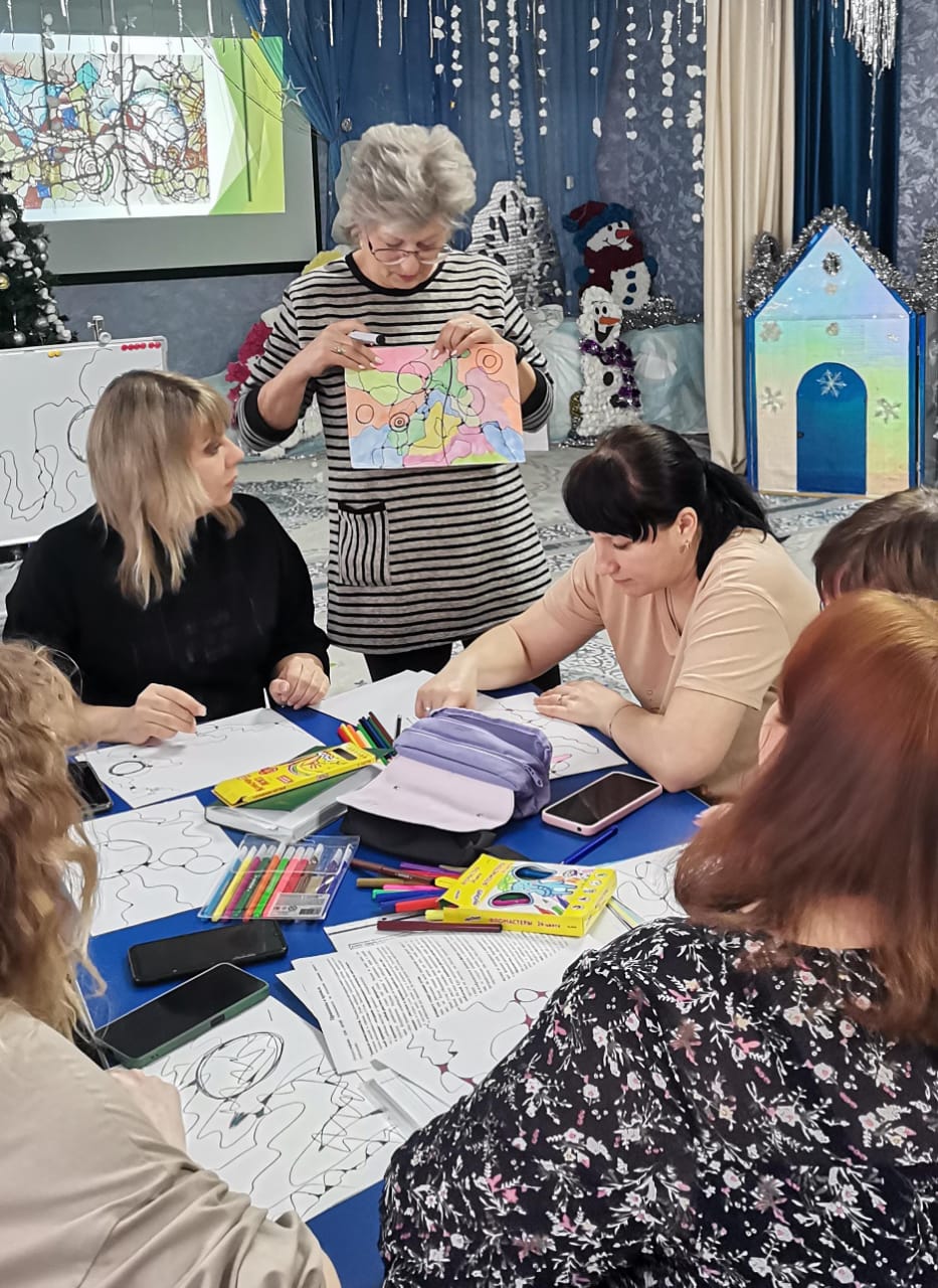 20.12.2023 жылы ШҚО білім басқармасының Өскемен қаласы бойынша білім бөлімінің "№10 "Колокольчик" балабақша-бөбекжайы " КМҚК логопед И. В. Бабихина педагогтармен "Нейрографика, мектеп жасына дейінгі балалармен жұмыста арт-терапия әдісі ретінде" эстетикалық коучинг өткізді, бұл педагогтарға өз білімдерін өзектендіруге мүмкіндік берді нейрографияны қолданудың тиімділігін сезіне отырып, білімді, коммуникативті дағдыларды игеруде және эмоцияларды білдіруде белгілі бір қиындықтарға тап болған балаларға көмектесу мүмкіндіктері.