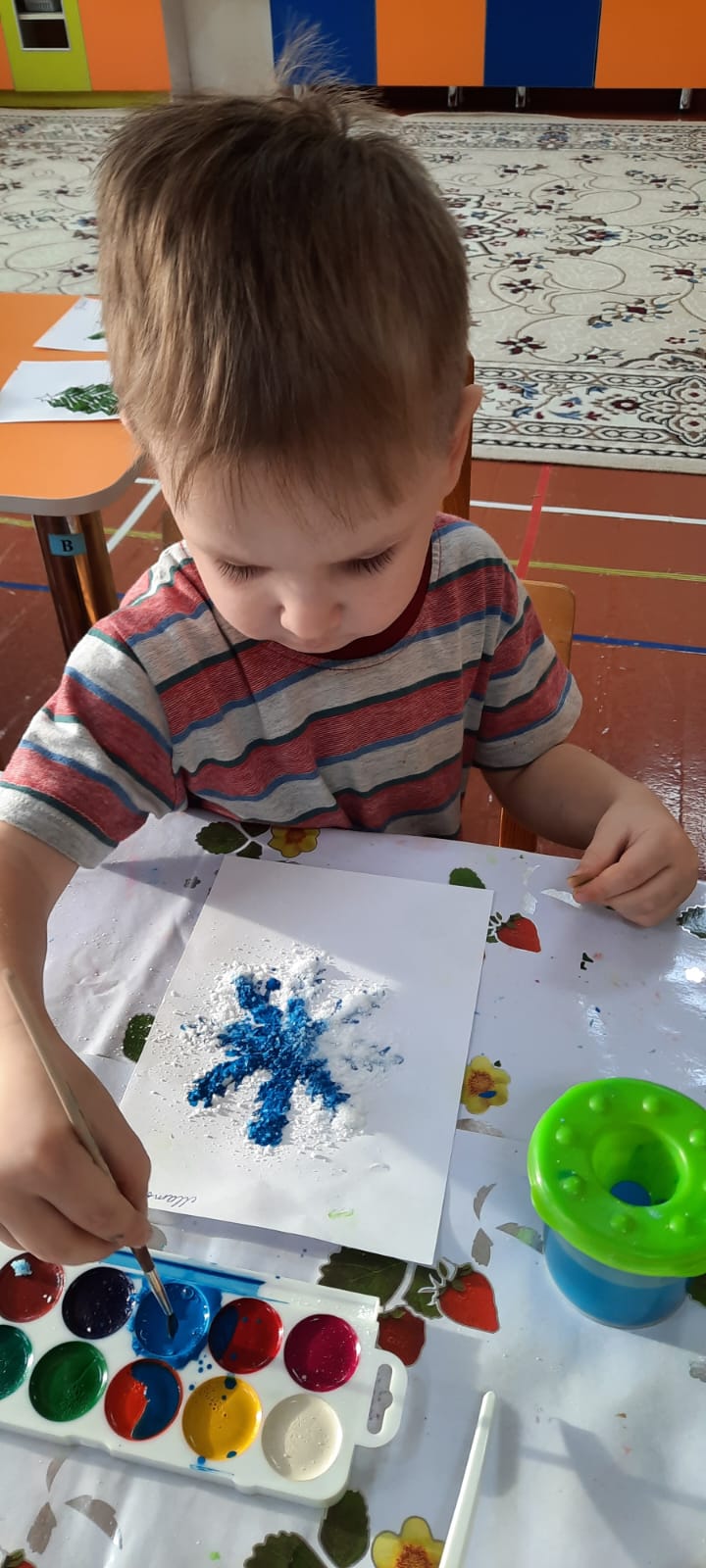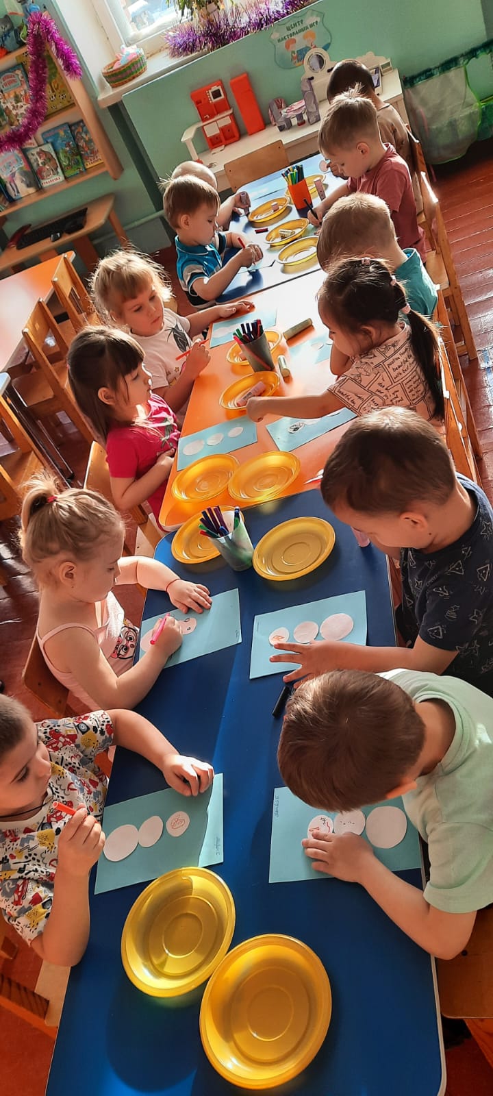 Смешарики тобындағы апта көңілді және қызықты өтті. Қарым-қатынас, танымдық, шығармашылық және физикалық дағдыларды дамытты. "Қыстың белгілері", "күннің бөліктері", "Менің отбасым "тақырыптарында әңгімелер жүргізді. Сурет салудың дәстүрлі емес әдістерін зерттеп, қолданды: олар шанышқылармен, бөтелкелерден тығындармен, тұзбен сурет салды, қолғапты қылқаламнан шашыратып безендірді.