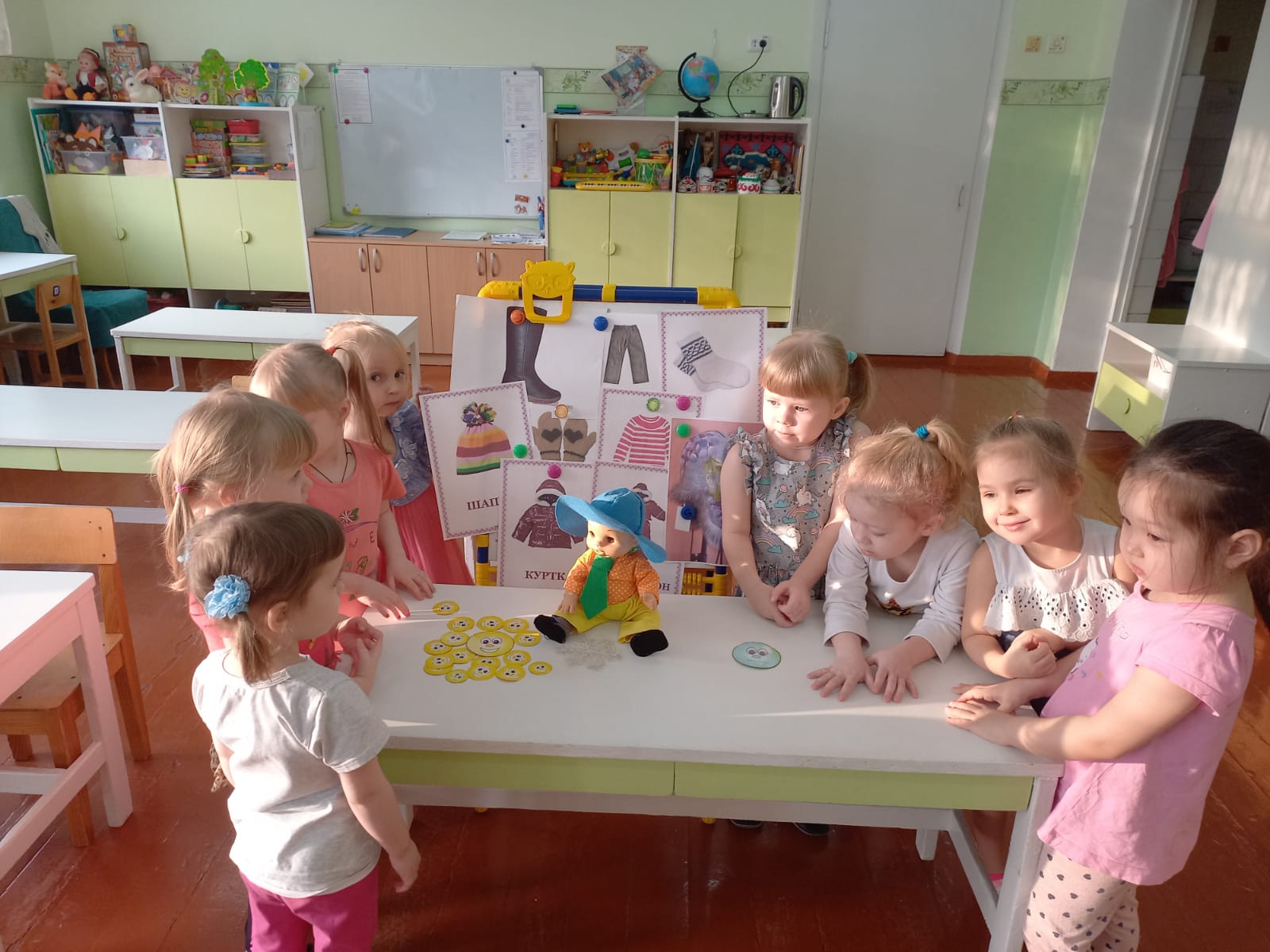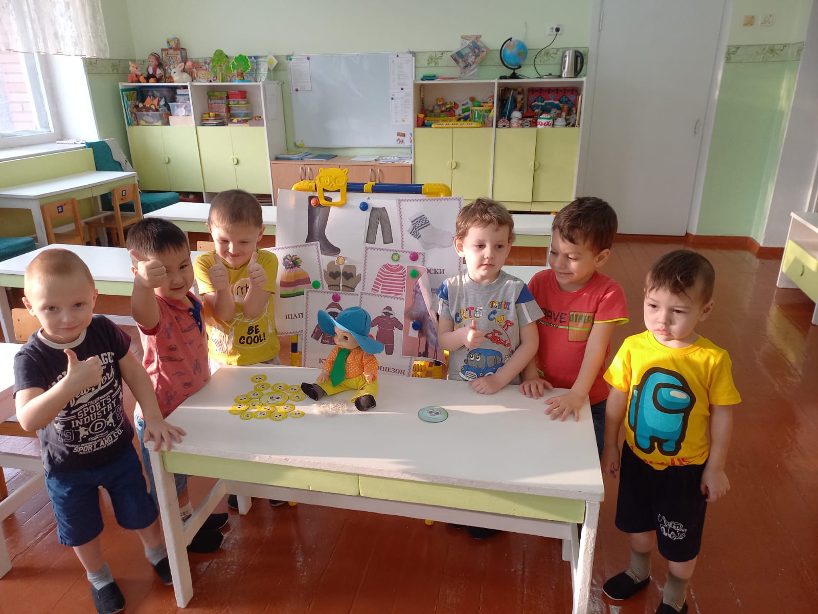 У детей группы «Гномики» была очень плодотворная неделя: «Умный мяч» узнал от детей много интересного и полезного об одежде и обуви.