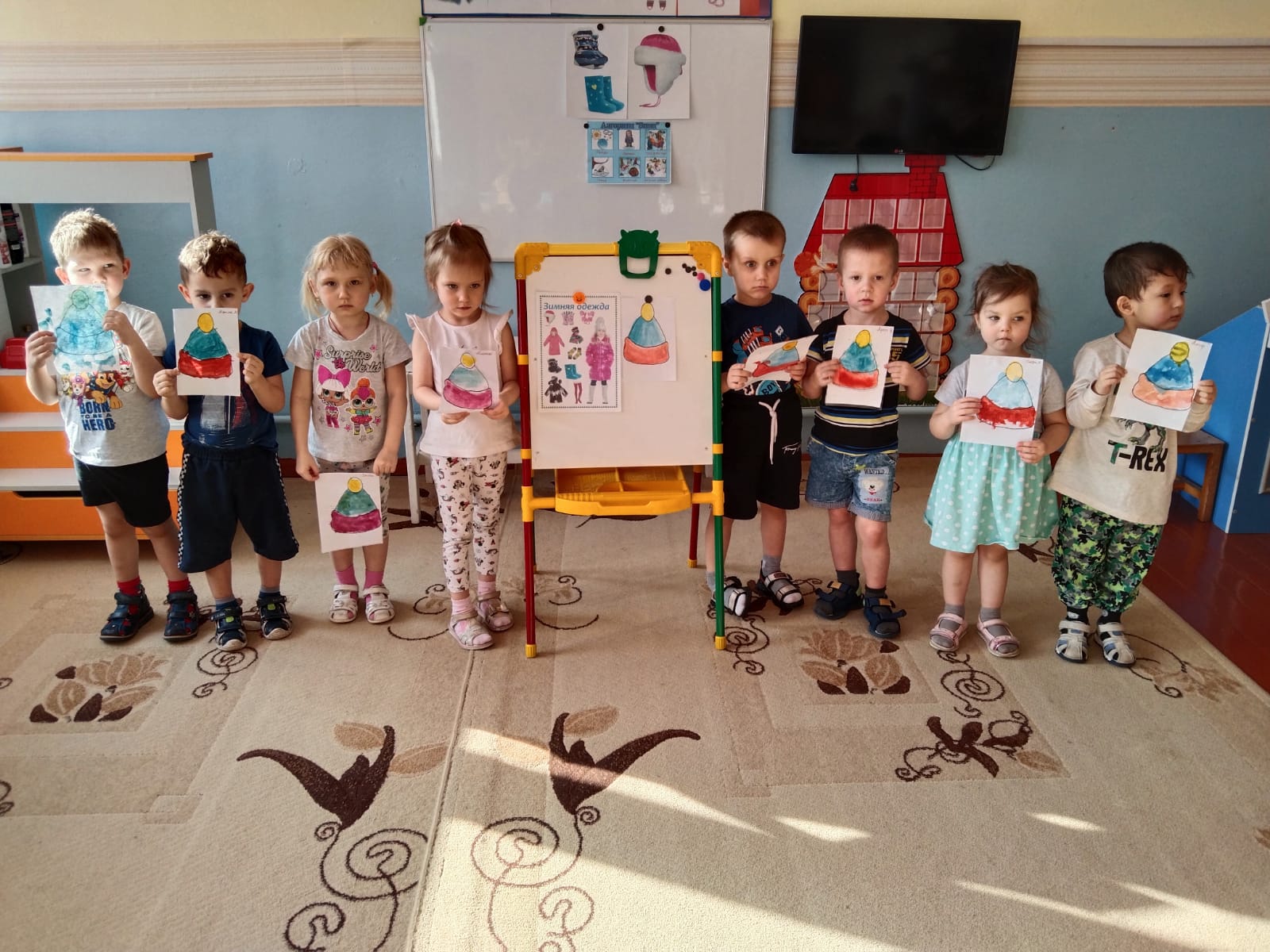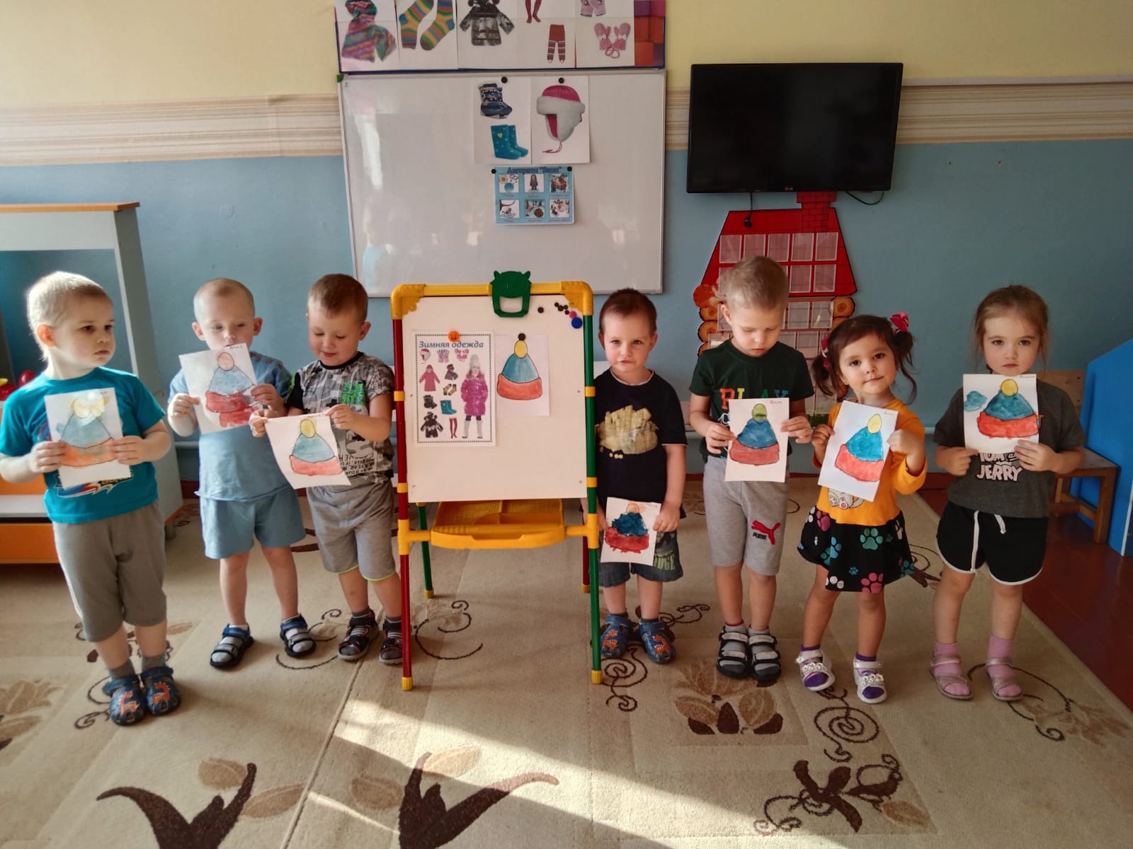В группе «Смешарики» прошла тематическая неделя «Одежда, обувь, головные уборы», на которой дети рассматривали одежду, материалы, из которых ее шьют. Играли в игры, загадывали загадки, сочиняли интересные, а порой и волшебные истории про одежду, головные уборы и обувь. Воспитатель: Хлыновская А.В.