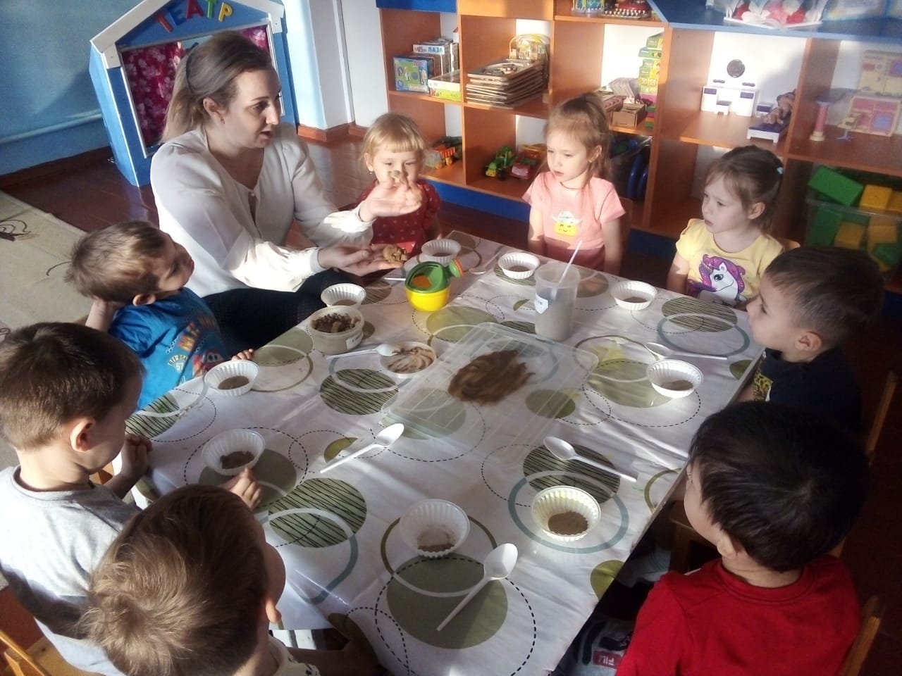 А в конце недели Мехнина Е.И. организовала огород прямо в группе - на подоконнике…приготовили землю для посадки лука, рассмотрели луковицы, узнали, где у неё донце и посадили лук. Ждем дружных всходов!!!