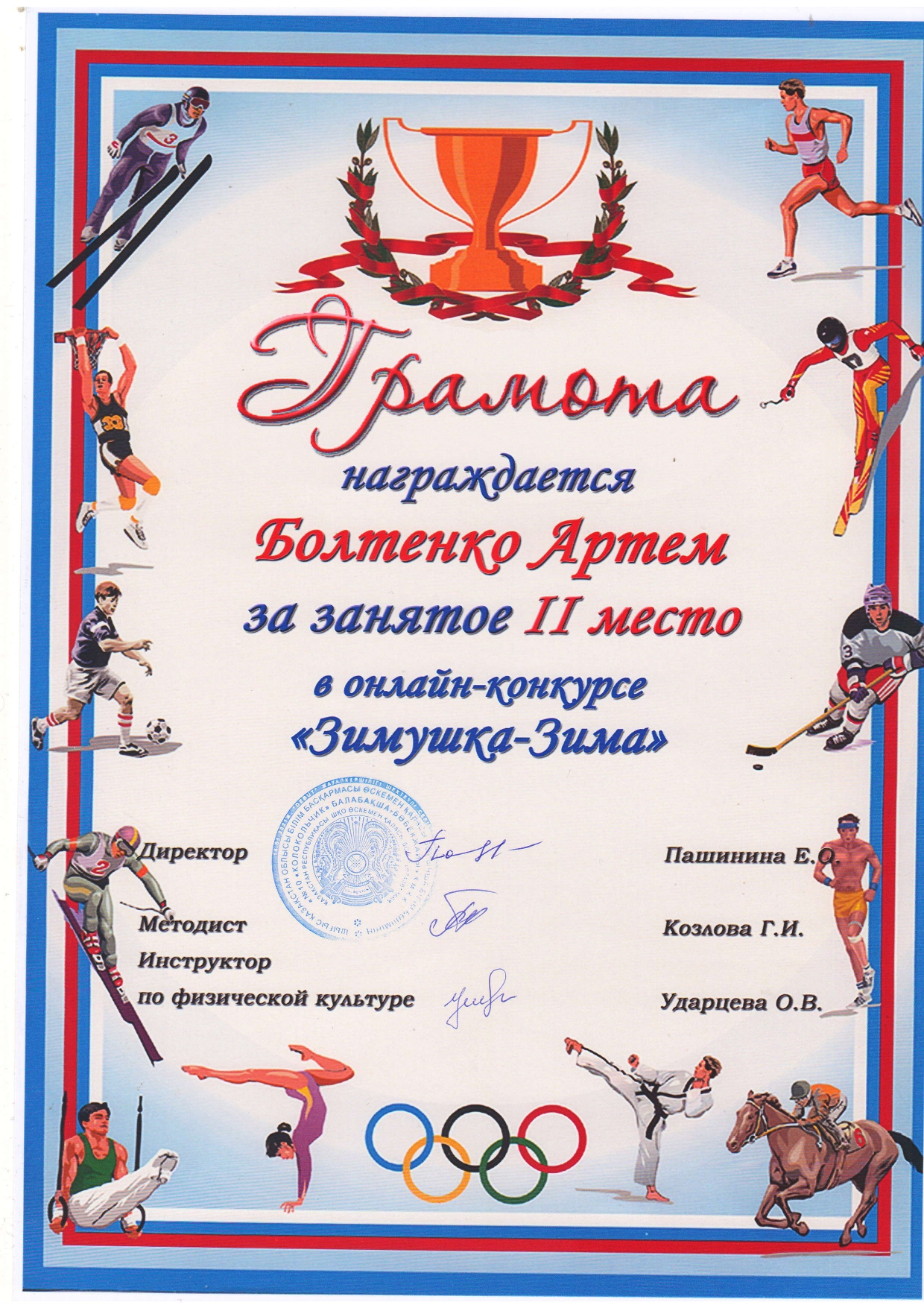 Поздравляем победителей онлайн фотоконкурса «Зимушка-зима», который прошел в КГКП «Детский сад-ясли №10 «Колокольчик». В конкурсе приняли участие самые спортивные любители активного отдыха и здорового образа жизни – воспитанники и их родители. Победители награждены грамотами и ценными призами. МОЛОДЦЫ!!!