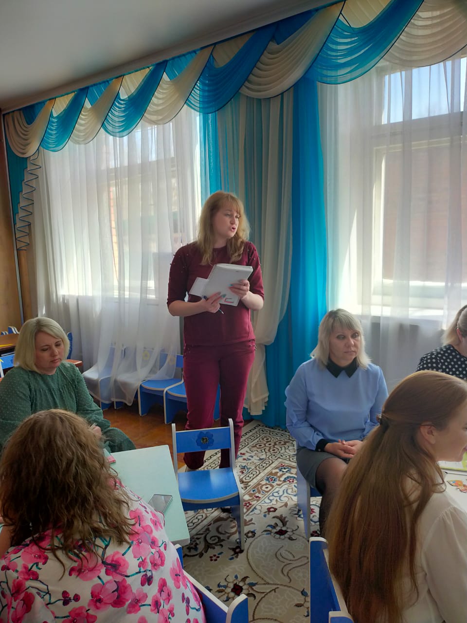 05.04.2022 года, педагоги детского сада, провели консультации для педагогов в рамках подготовки к педсовету №4 «Технология проблемного обучения как условие формирования социально-коммуникативных навыков у детей дошкольного возраста». Воспитатель Хлыновская А. выступила с темой: «Социально-коммуникативное развитие старших дошкольников с использованием технологии проблемных ситуаций». Пономарева Н.С. - «Организация сюжетно-ролевой игры в условиях ДО». Преподаватель английского языка Полтаранина Т.В. - «Использование мультимедийных презентаций в образовательной деятельности с детьми дошкольного возраста».