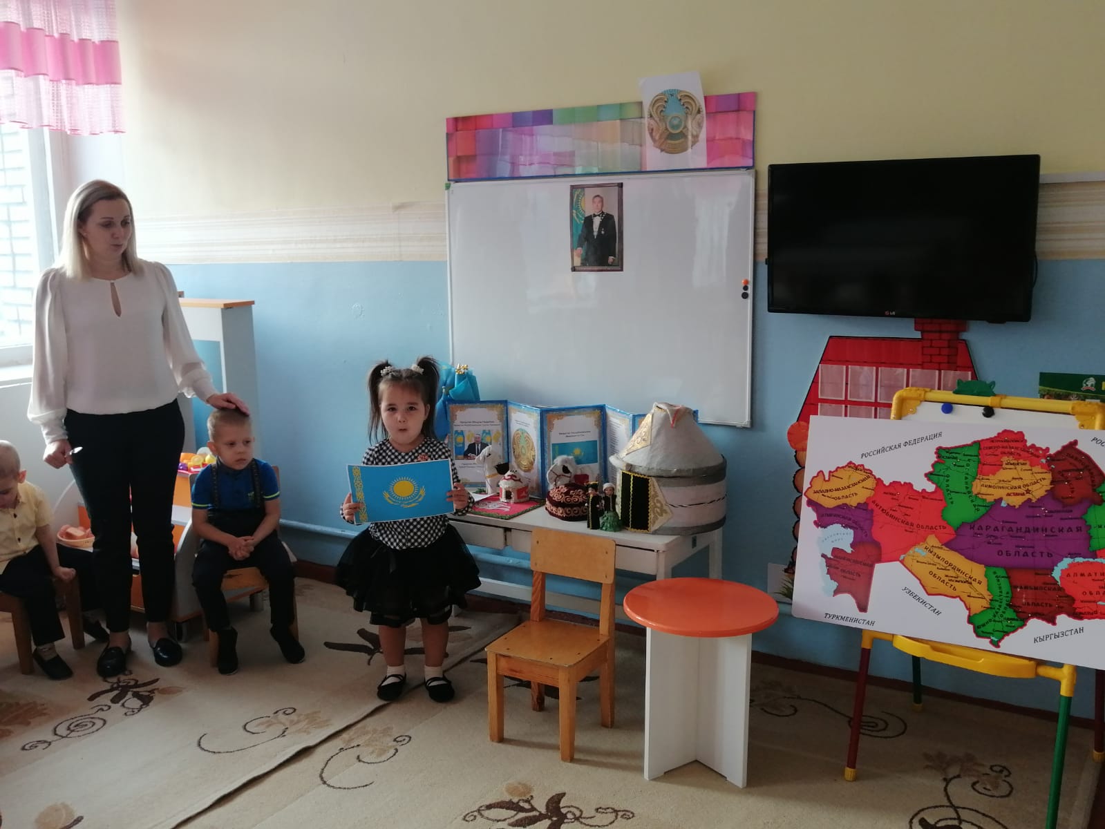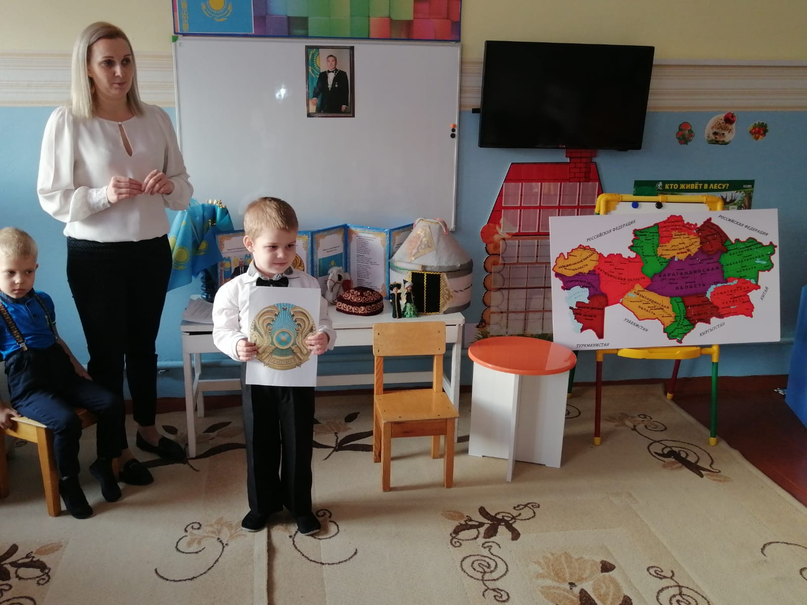 В преддверии празднования 30 лет Независимости Казахстана и Дня Первого Президента, в КГКП "Детский сад-ясли 10 "Колокольчик'', воспитатели и педагоги провели с детьми тематические беседы "Президент независимого Казахстана", цель которых - ознакомление дошкольников с деятельностью и жизнью Первого Президента страны Назарбаева Н.А..Использованные педагогами подвижные игры, дидактические игры способствовали расширению знаний детей о стране, ее богатствах, о роли человека в ней.