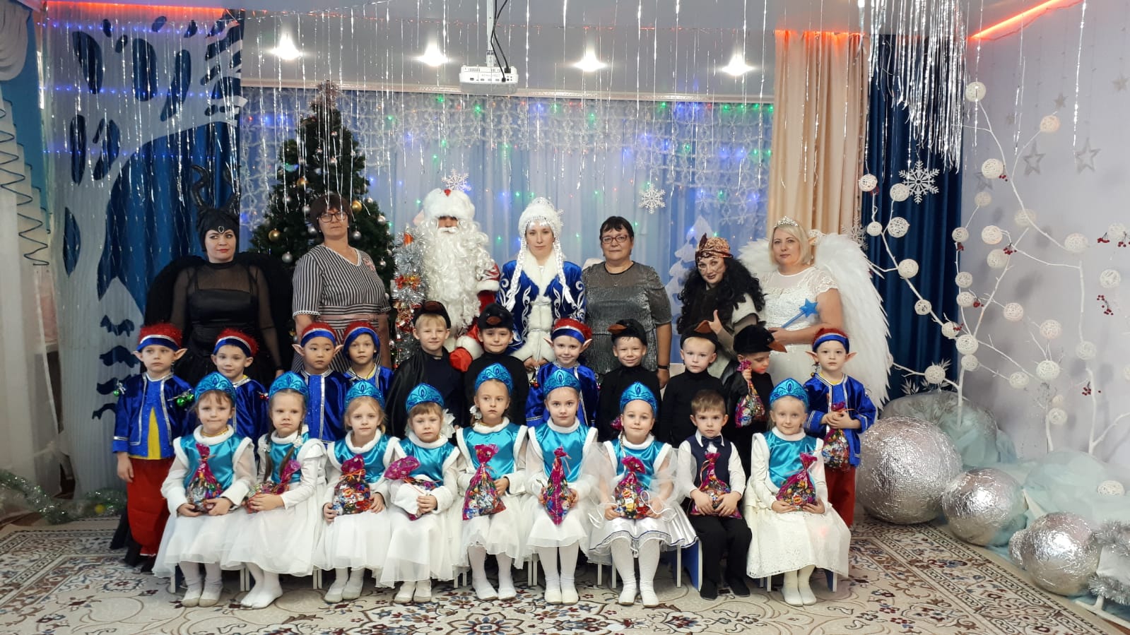 Сегодня, в предшкольную группу «Солнышко», в КГКП «Детский сад-ясли» №10 «Колокольчик», на новогоднее представление приходила сказка. Дети узнали о волшебных чарах Малефисенты, встретились с доброй Феей. Во время представления царила атмосфера праздника, волшебства, чувствовался позитивный эмоциональный настрой воспитанников. После представления дети получили долгожданные подарки от главного волшебника - Деда Мороза.